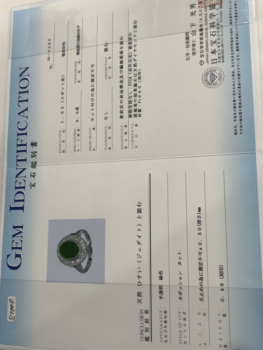 【石目】天然ひすい(ジェダイト)、0.48天然ダイヤモンド