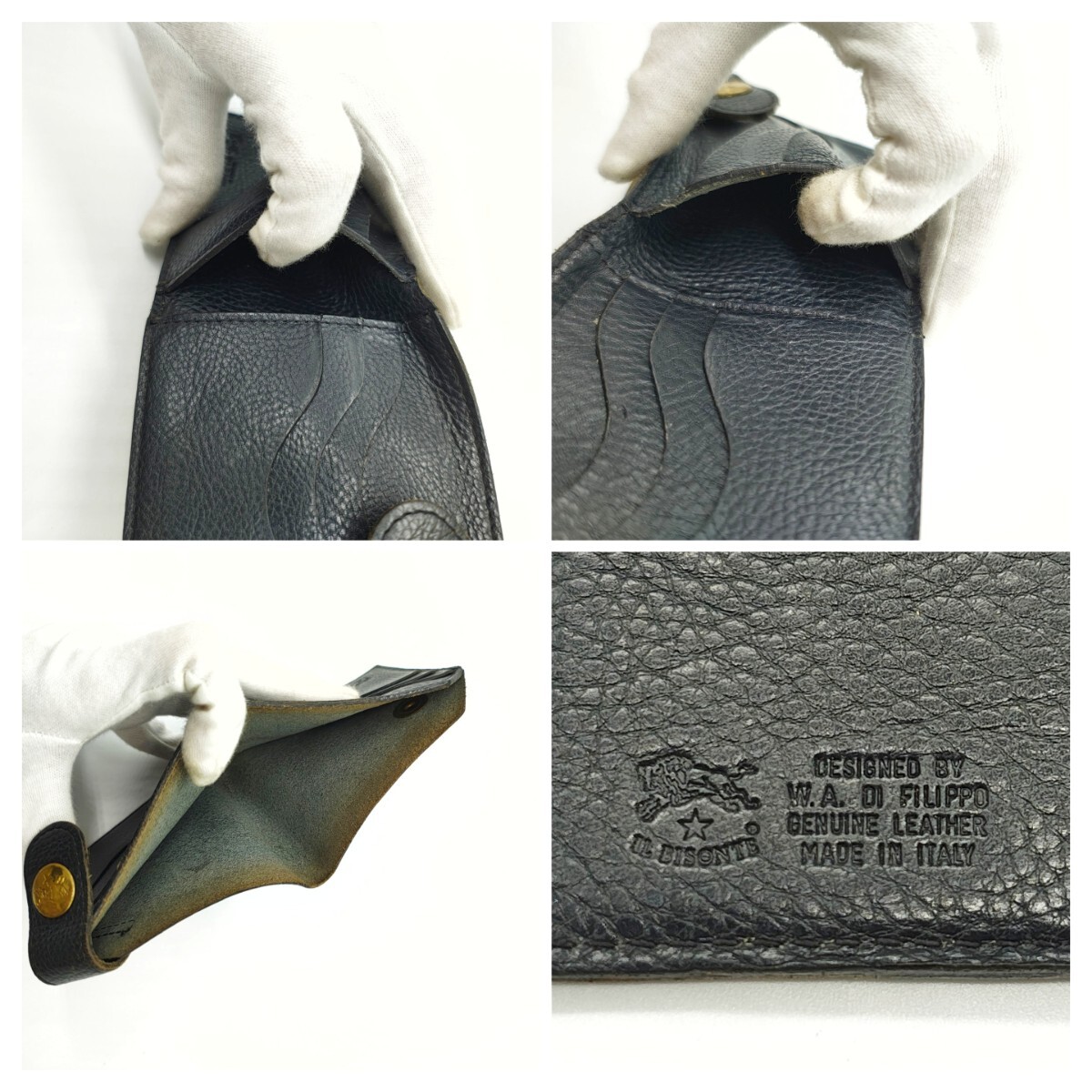 美品 IL BISONTE イルビゾンテ レザー 二つ折り財布 ネイビー