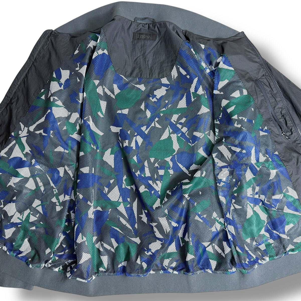 J7164 美品 ゼニア 近年モデル カモ柄裏地ナイロンブルゾン グレー系 XXL ZEGNA