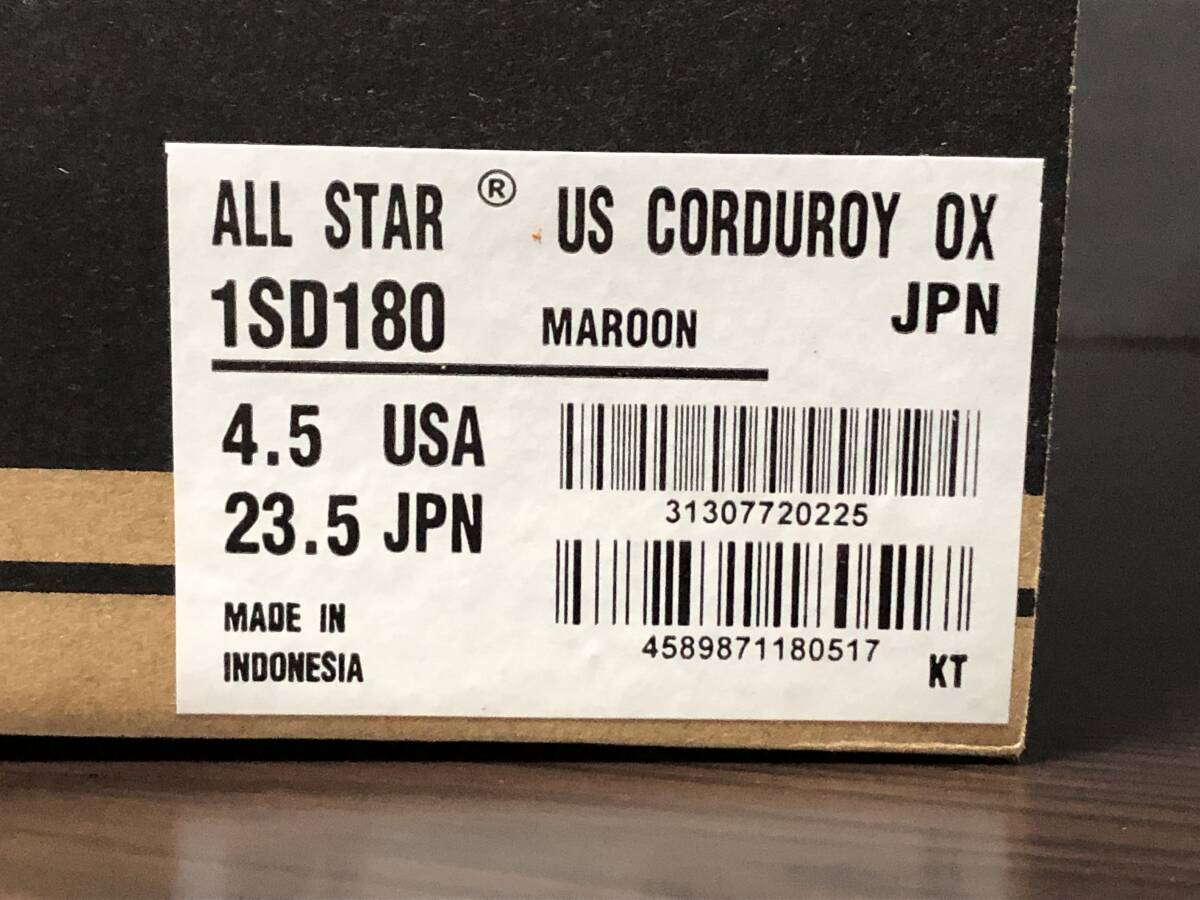 23.5cm CONVERSE ALL STAR US CORDUROY OX コンバース オールスター US コーデュロイ OX MAROON