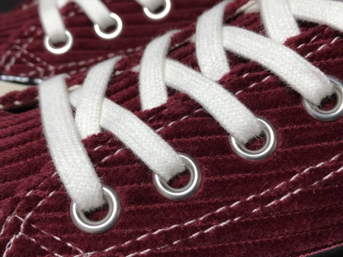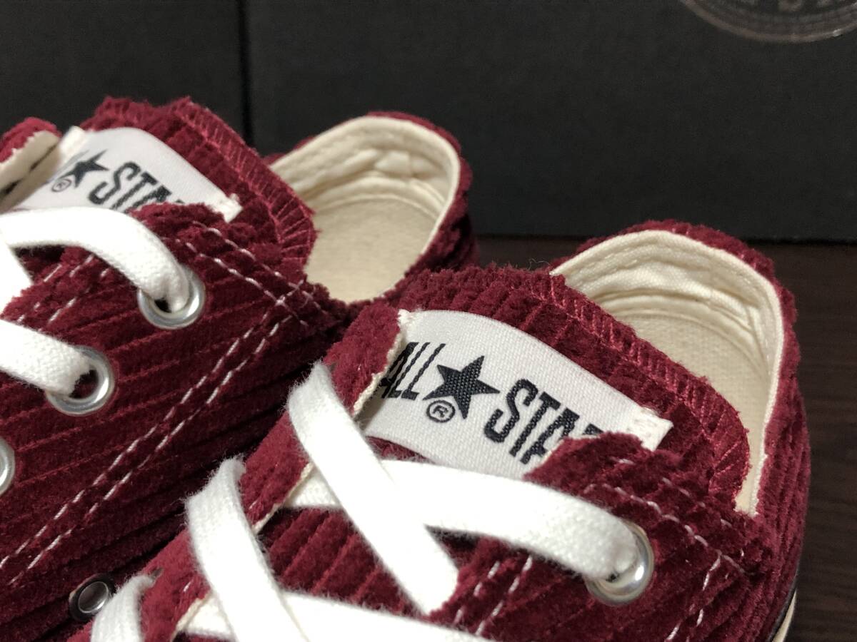 うねの太いコーデュロイ生地をアッパー全面に使用した温かみのあるオールスター。コーデュロイの素材感がマッチするマルーンを配色しています。