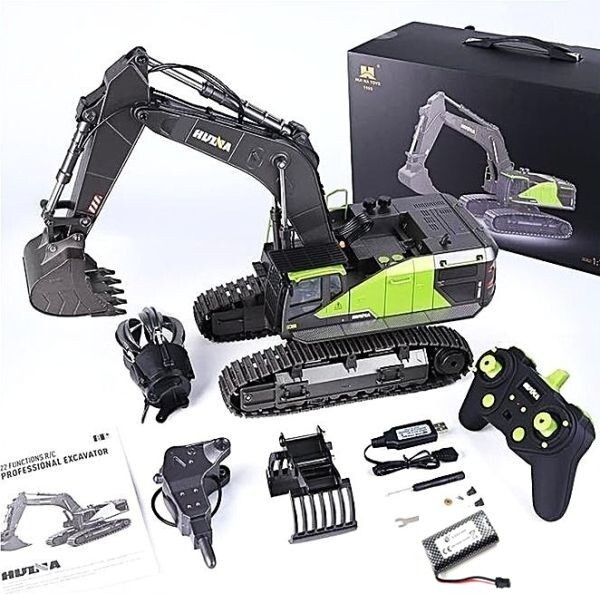 Huina Toys 1593 塗装済み完成品 1/14スケール 2.4GHz 22ch RTR フルオペレーション パワーショベルラジコン 3種のアタッチメントセット