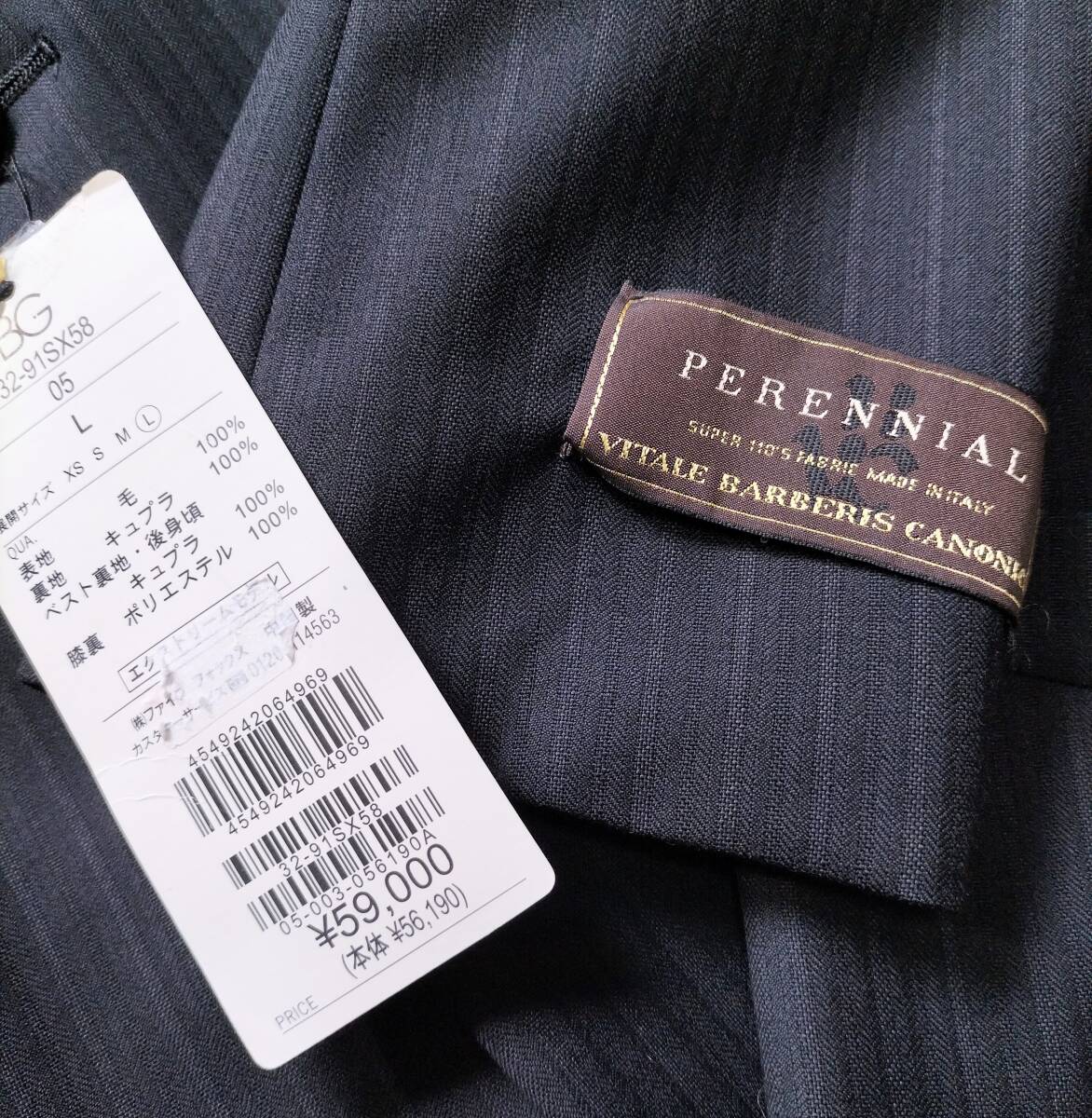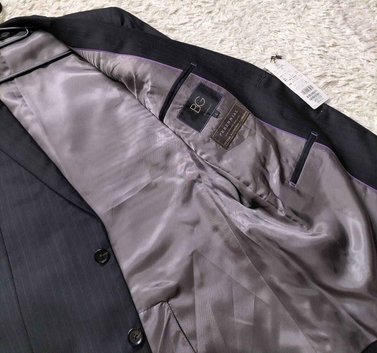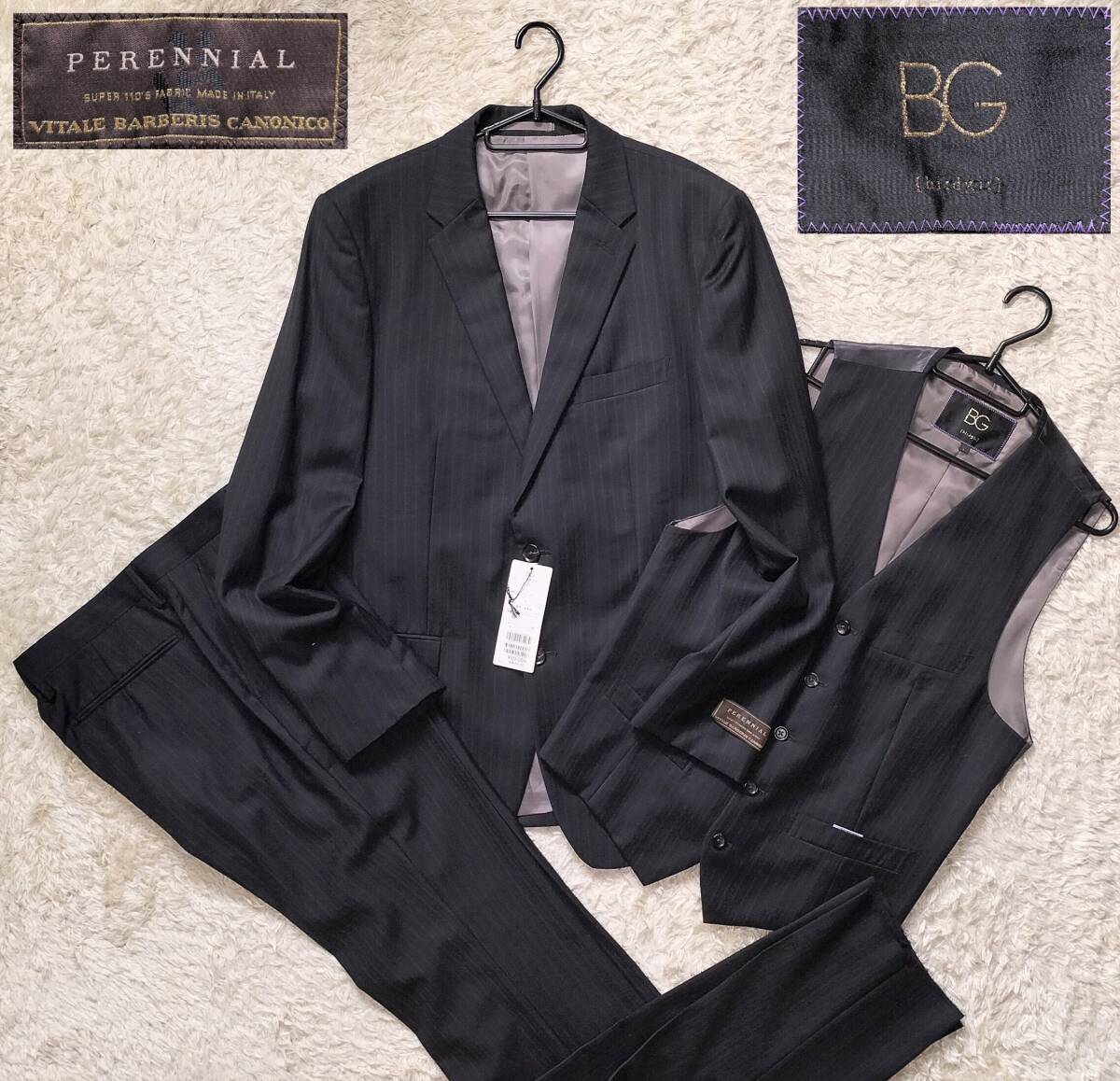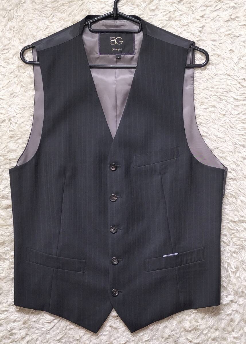 【未使用★定価59,000円】Lサイズ BG 2Bスーツセットアップ ベスト付き3点セット 3ピース スリーピース●カノニコ生地 黒☆ビージー (8151)