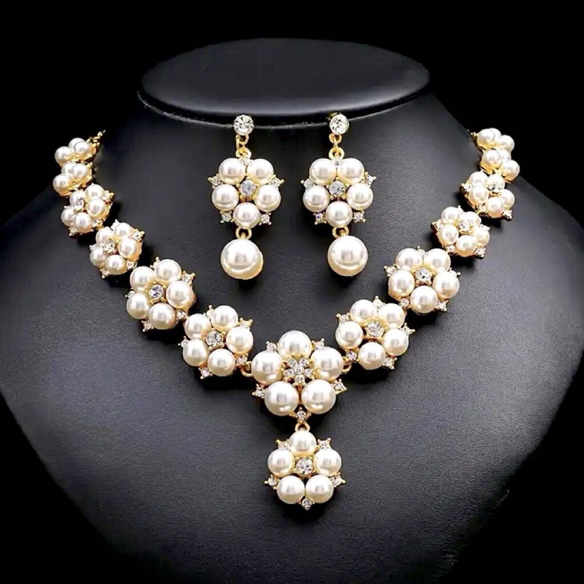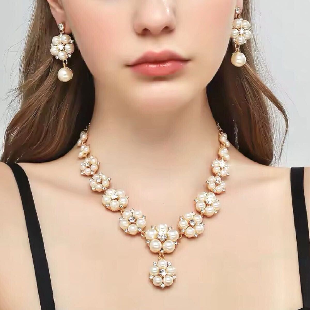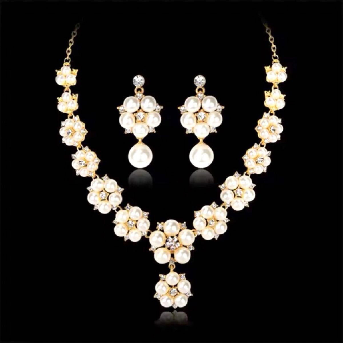【普段使いにもウエディングにピッタリ! ピアスとネックレスの2点セット】