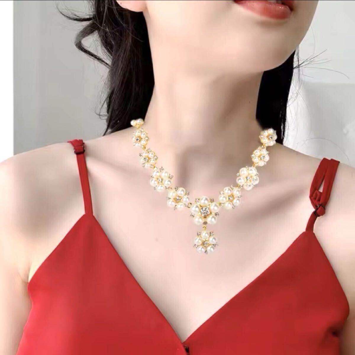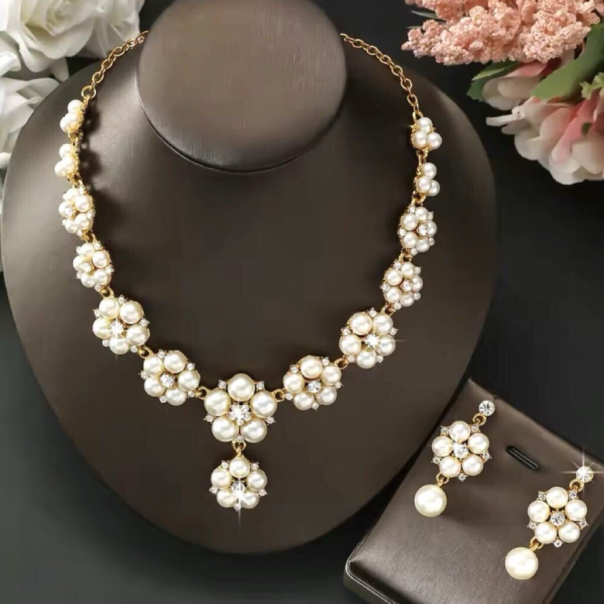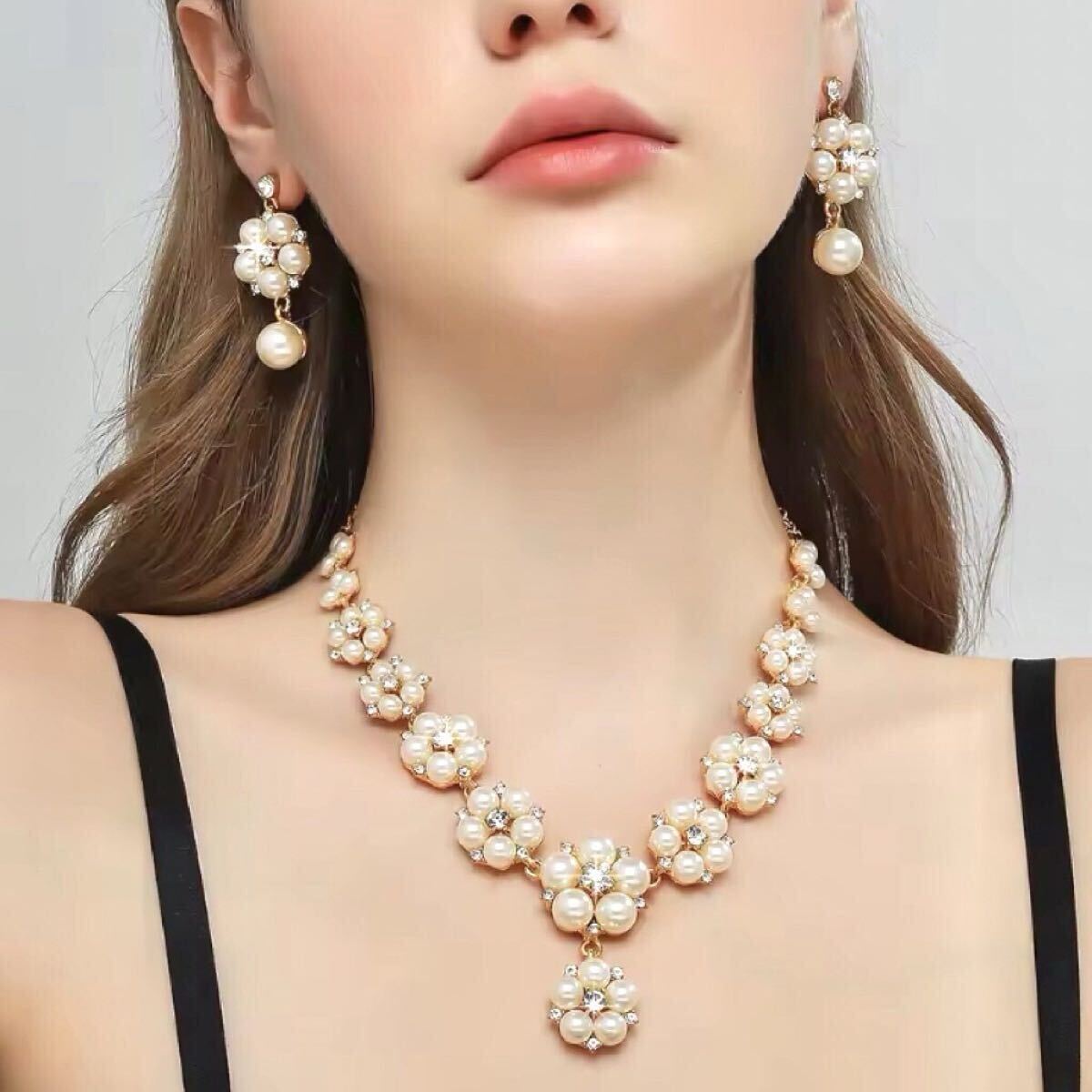 【普段使いにもウエディングにピッタリ! ピアスとネックレスの2点セット】
