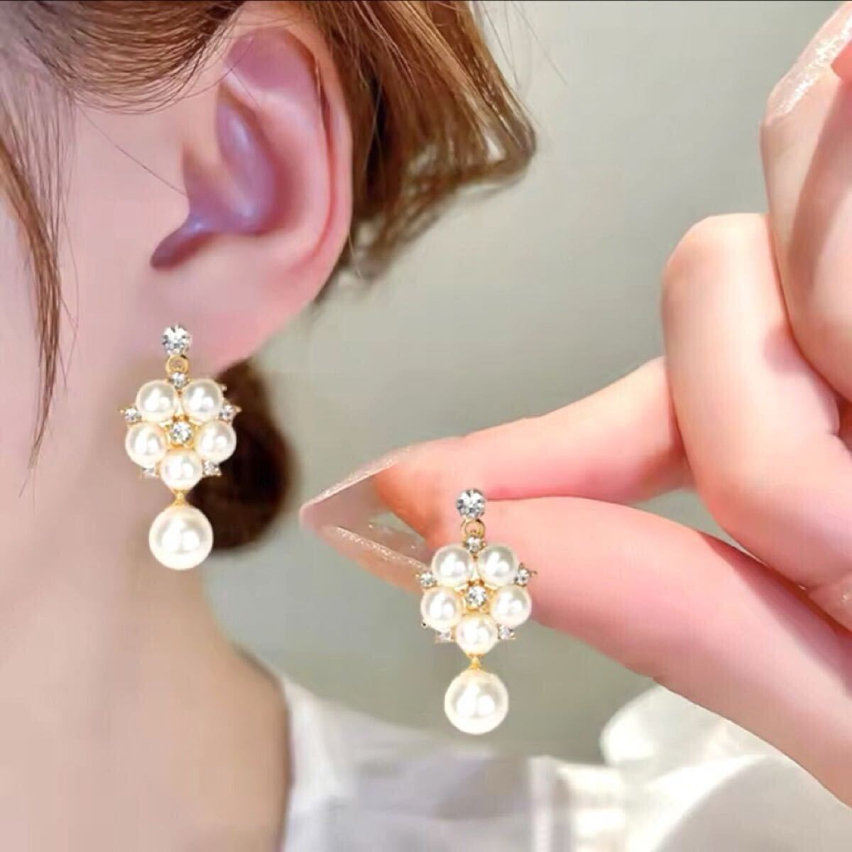ヨーロッパ風 フェイクパール調 ジルコニア2点セット◎