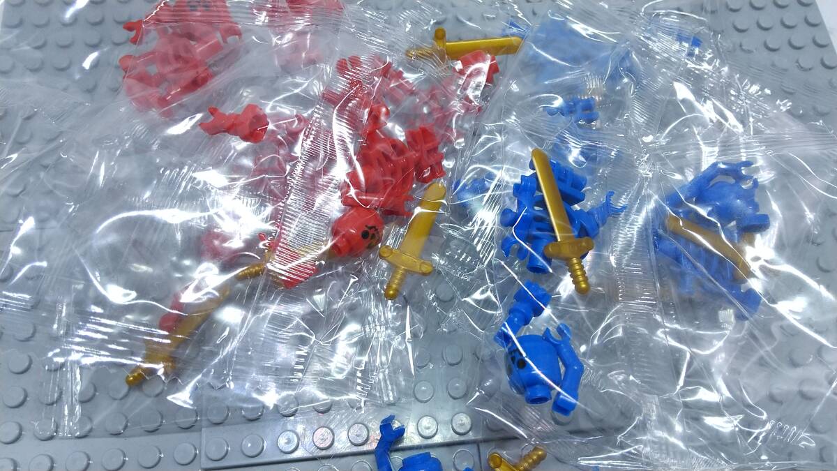 スケルトンミニフィグ 赤青 匿名配送 LEGO互換 レゴ武器 インテリア ガイコツ ホラー 送料無料 fire ice ハロウィン 火炎 氷