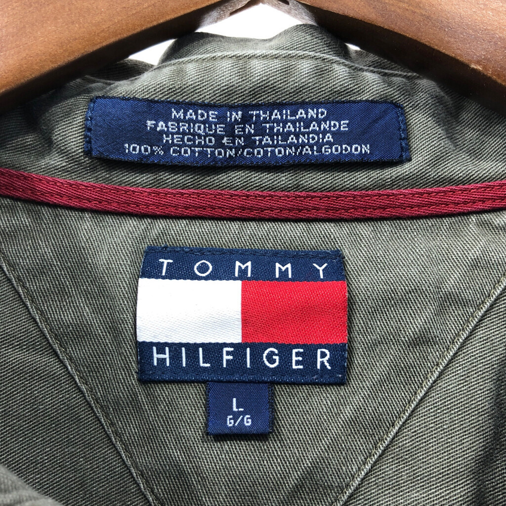 |         【商品管理番号】 Q7197 【ブランド】 TOMMY HILFIGER/トミーヒルフィガー 【サイズ】 L 【実寸サイズ】 肩幅:約50cm 着丈:約79cm 身幅:約63cm 袖丈:約62cm 【主な素材】 表地 : コットン 【色】 カーキ 【仕様】 90年代 【状態】 汚れ:袖 キズ:脇 特記事項:使用感あり、色褪せ  | |||