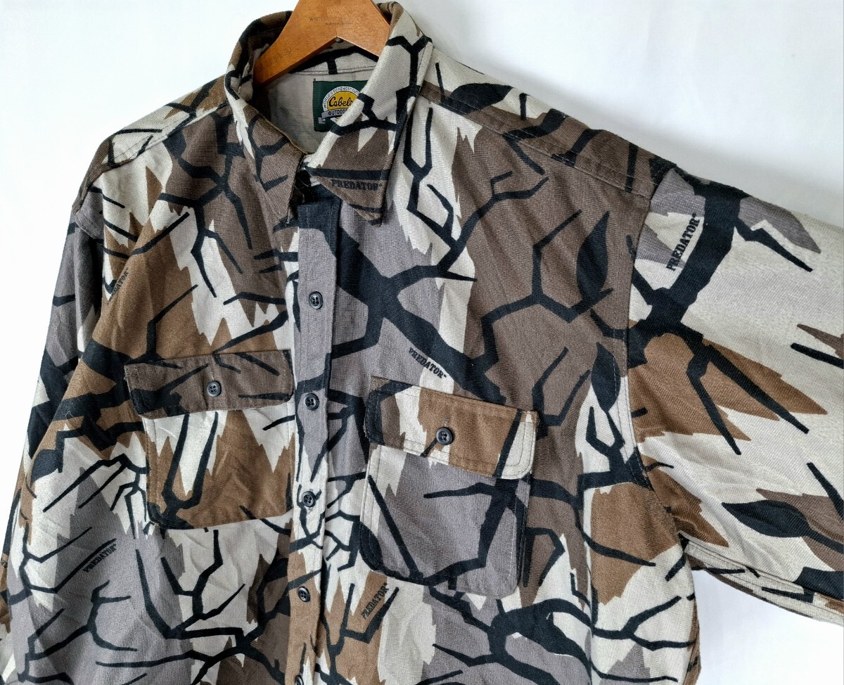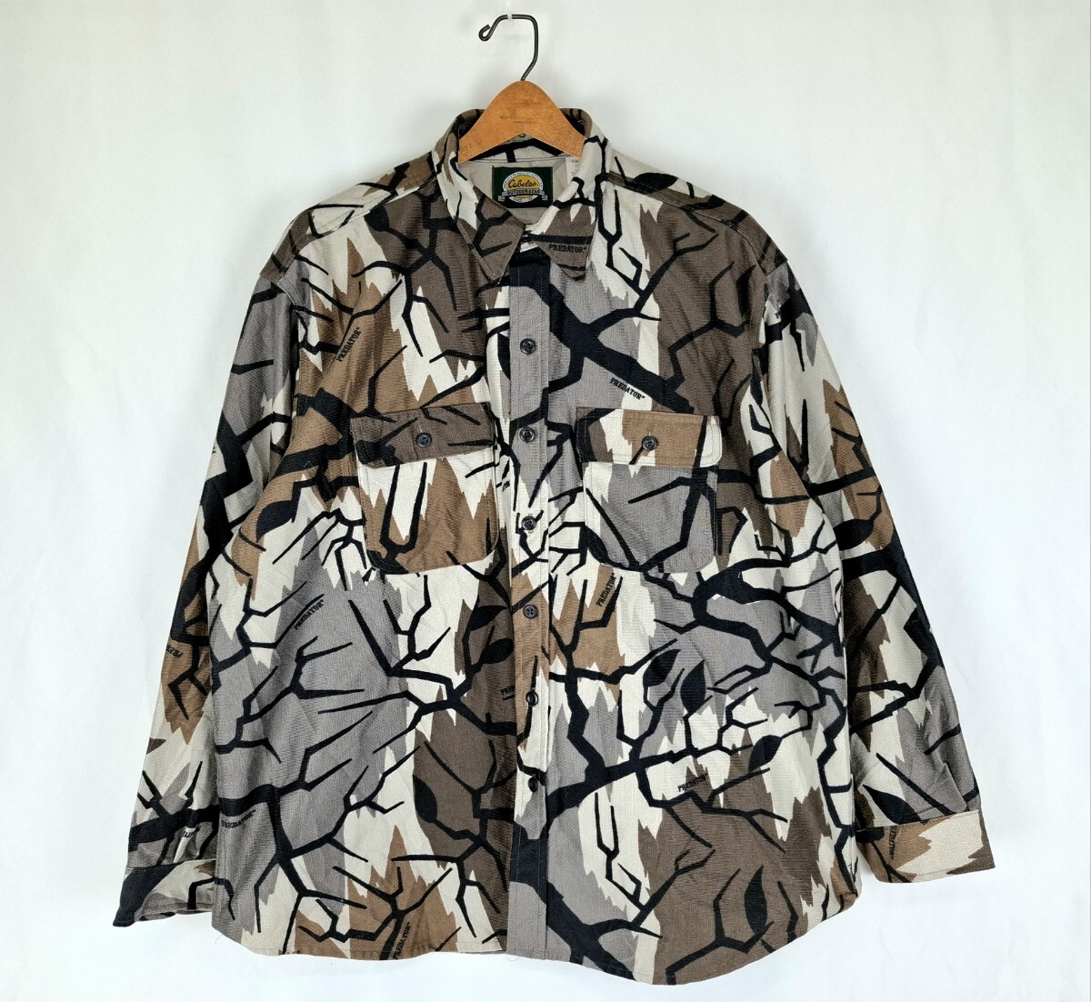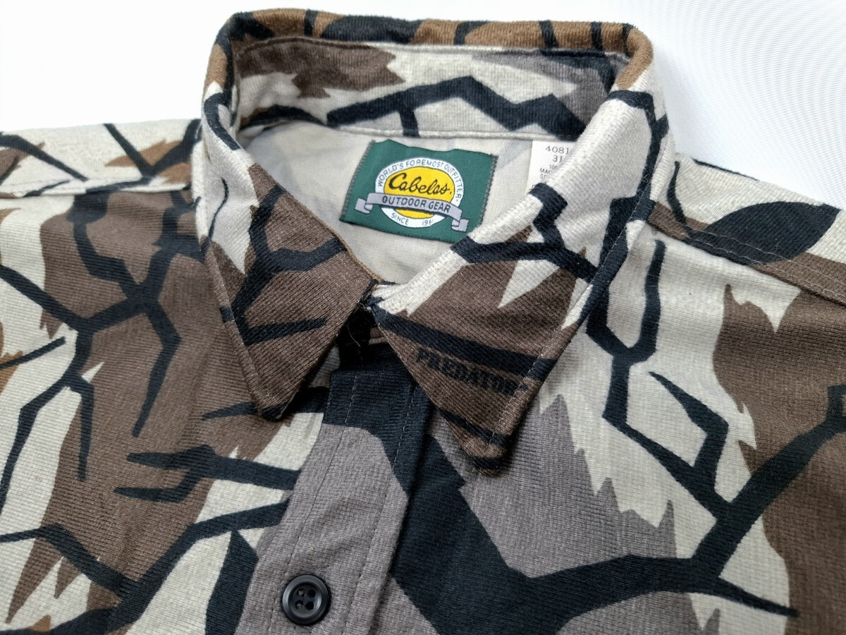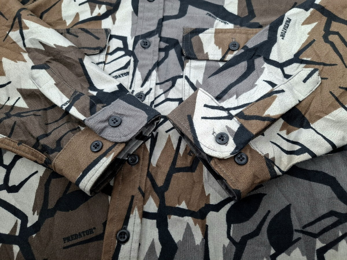 珍しいプレデターカモ柄の化繊ネルの様な生地の一着で、サイズは2XLです。