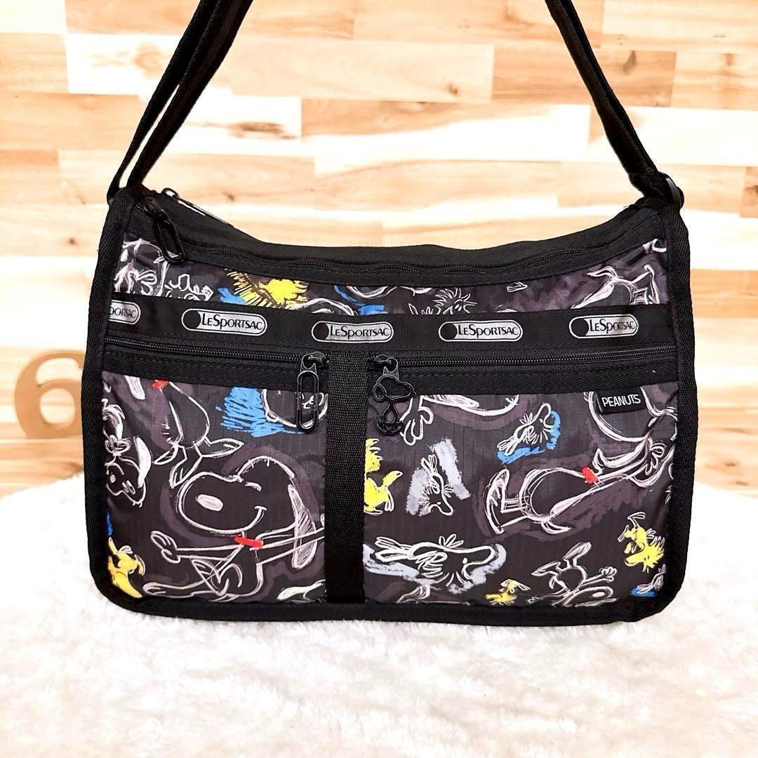 * DELUXE EVERYDAY BAG / デラックスエブリデイ / CHALKBOARD SNOOPY / チョークボードスヌーピー *軽くて扱いやすいナイロン素材で仕立てられ、スヌーピーやチャーリーブラウン、ウッドストックがチョークで描かれたような優しい手書きライクなデザインがとても魅力的なLeSportsac × SNOOPYコラボのショルダーバッグです。既に完売。生産も終了しており今では手に入りにくくなっているお品です。