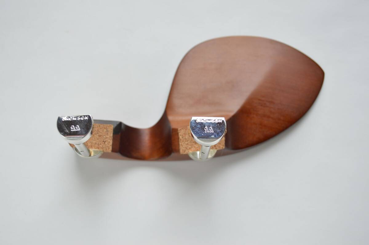 欧州産のボックスウッドを用いた最高級のチンレスト、銀貼りのヒル金具を持つ濃密な木目の逸品
