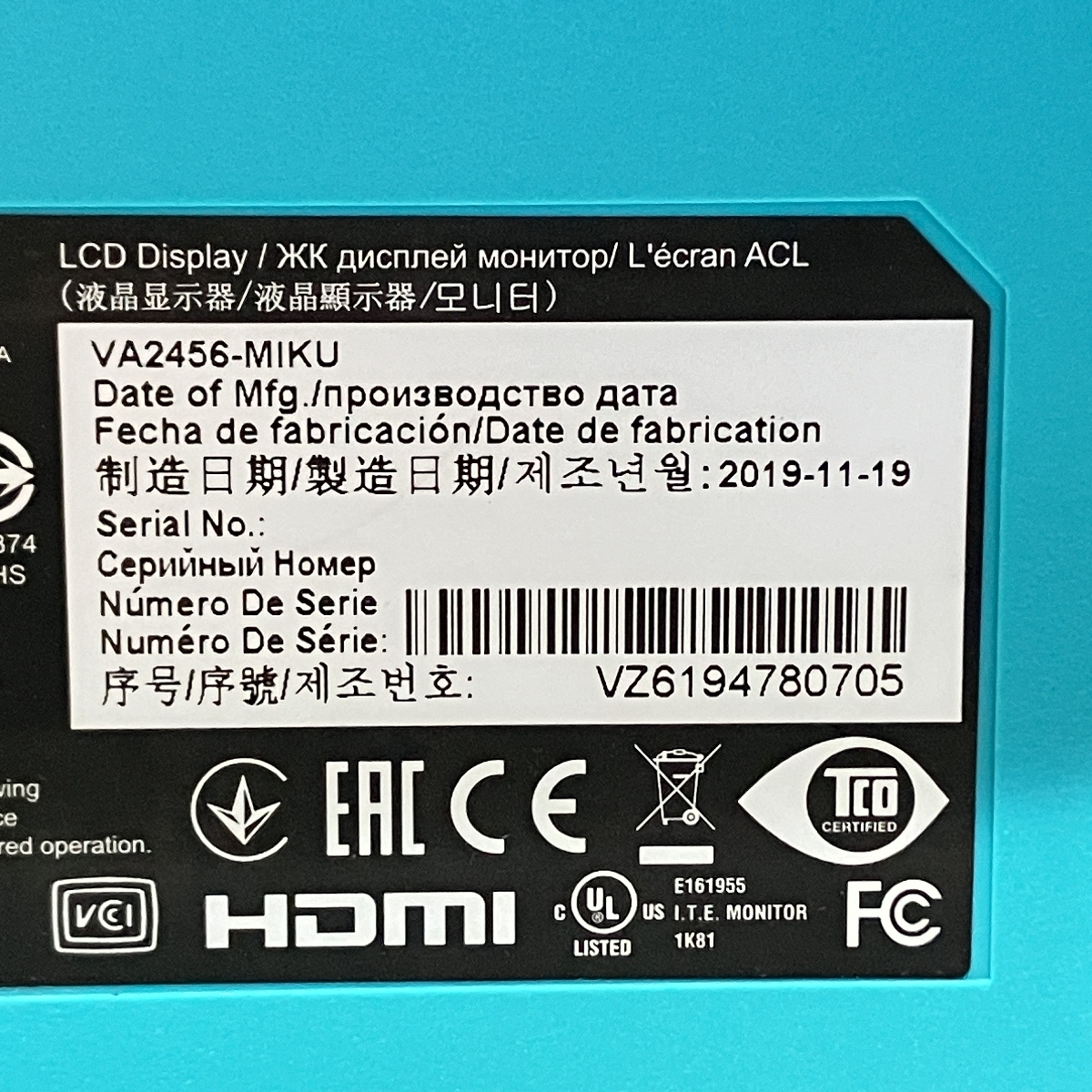メーカー名 | ViewSonic | 型番 | VA2456-MIKU |