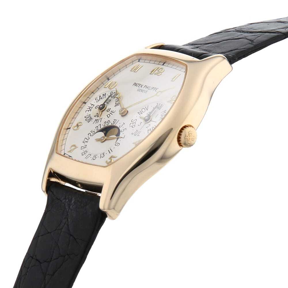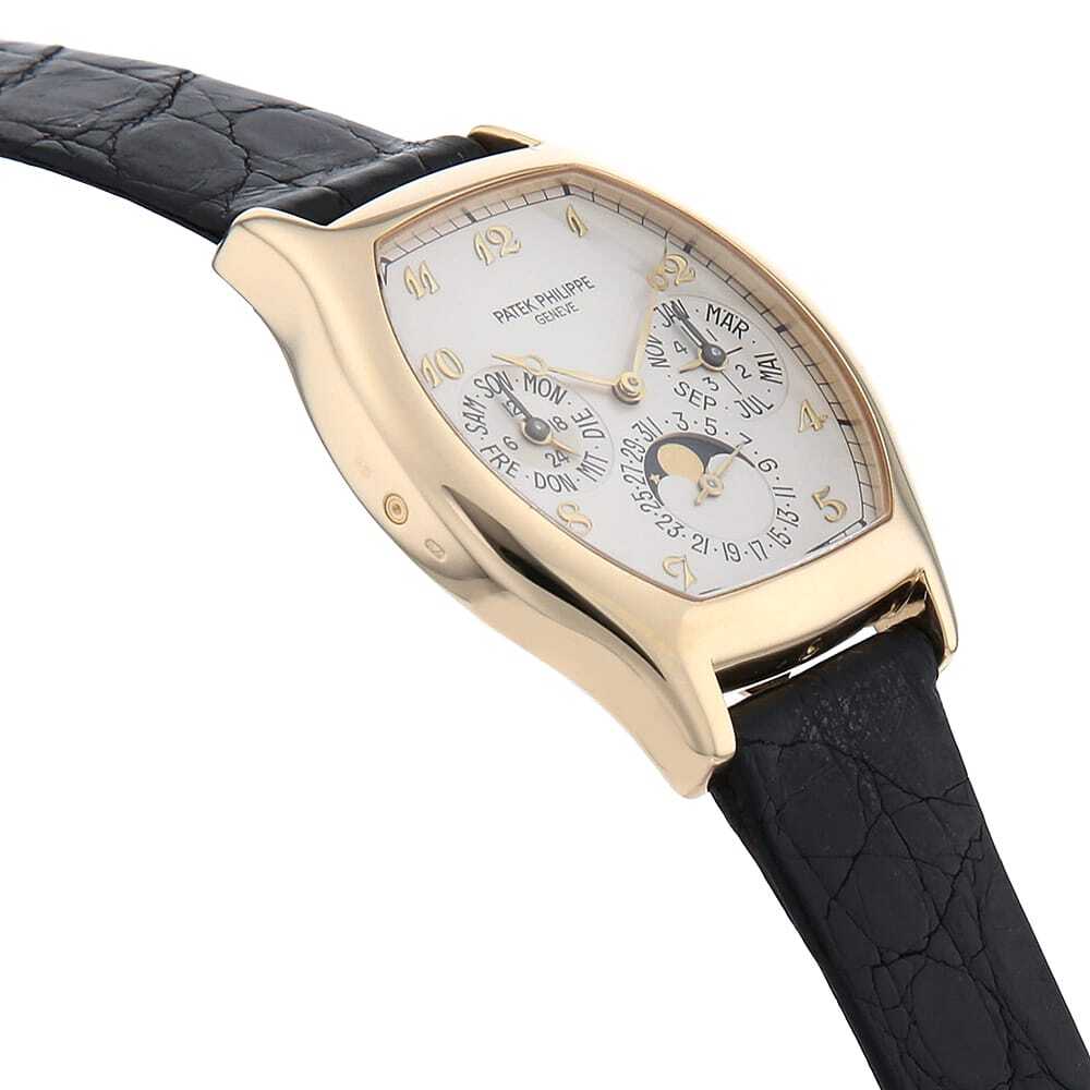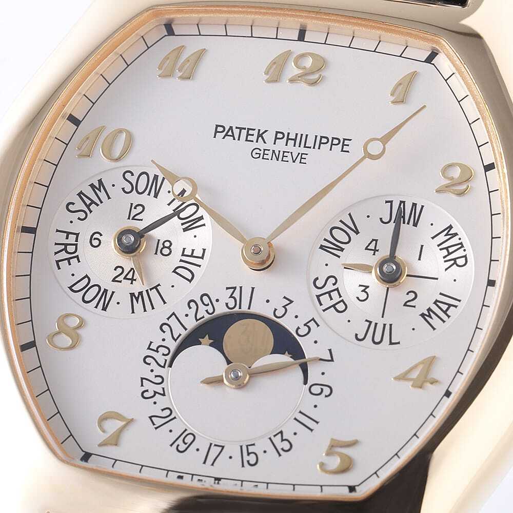 | モデル情報 | パテックフィリップを代表するコンプリケーションモデル「パーペチュアルカレンダー」。こちらの時計は、アール・デコ時代を思わせる流麗なケース形状にブレゲ針とブレゲ数字を配した希少モデルです。歴史あるPATEK PHILIPPEの威厳を感じる逸品を是非ご堪能ください。 |