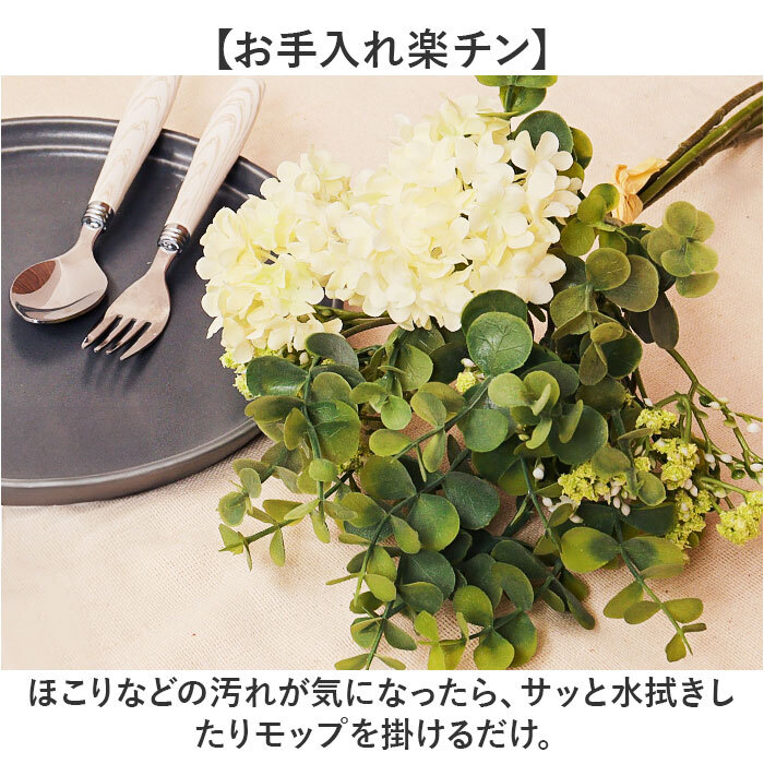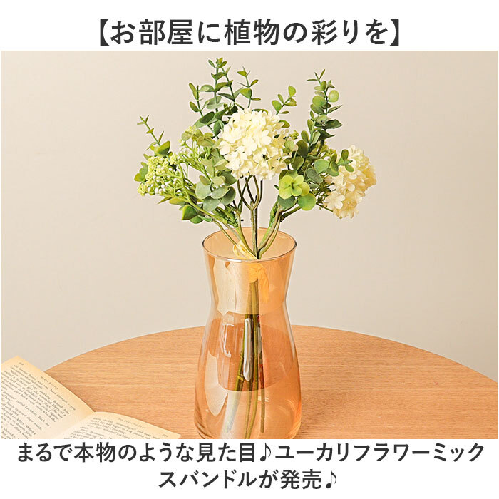 | 商品説明 | ・・【お部屋に植物の彩りを】 ・まるで本物のような見た目♪ユーカリフラワーミックスバンドルが発売♪ ・【水やりなどお世話不要】 ・一番のポイントはお世話要らず◎フェイクグリーンなので水やりの必要もナシ! ・【鮮やかな姿を長く楽しめる】 ・枯れないので生花より、色鮮やかさを長く楽しめるのも嬉しいポイント。 ・【アレンジがスムーズ】 ・茎の中にワイヤーが入っており、向きや曲がり具合のアレンジがしやすい♪ ・【お手入れ楽チン】 ・ほこりなどの汚れが気になったら、サッと水拭きしたりモップを掛けるだけ。 ・【お店のインテリアにも】 ・ご自宅のインテリアにはもちろん、サロンやお店のディスプレイにも最適☆ |