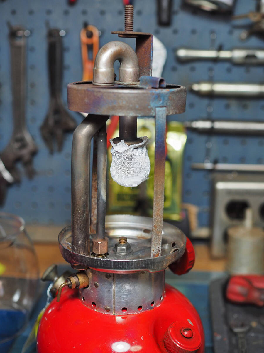 他で買ったけど調子が悪いと言う相談を頻繁に受けますが、専門知識や技術力の無い業者さんは、タンクとバルブアッシーを分解しての整備せず、磨いただけで整備済みとしているケースも多く、こうしたランタンが出回っています。