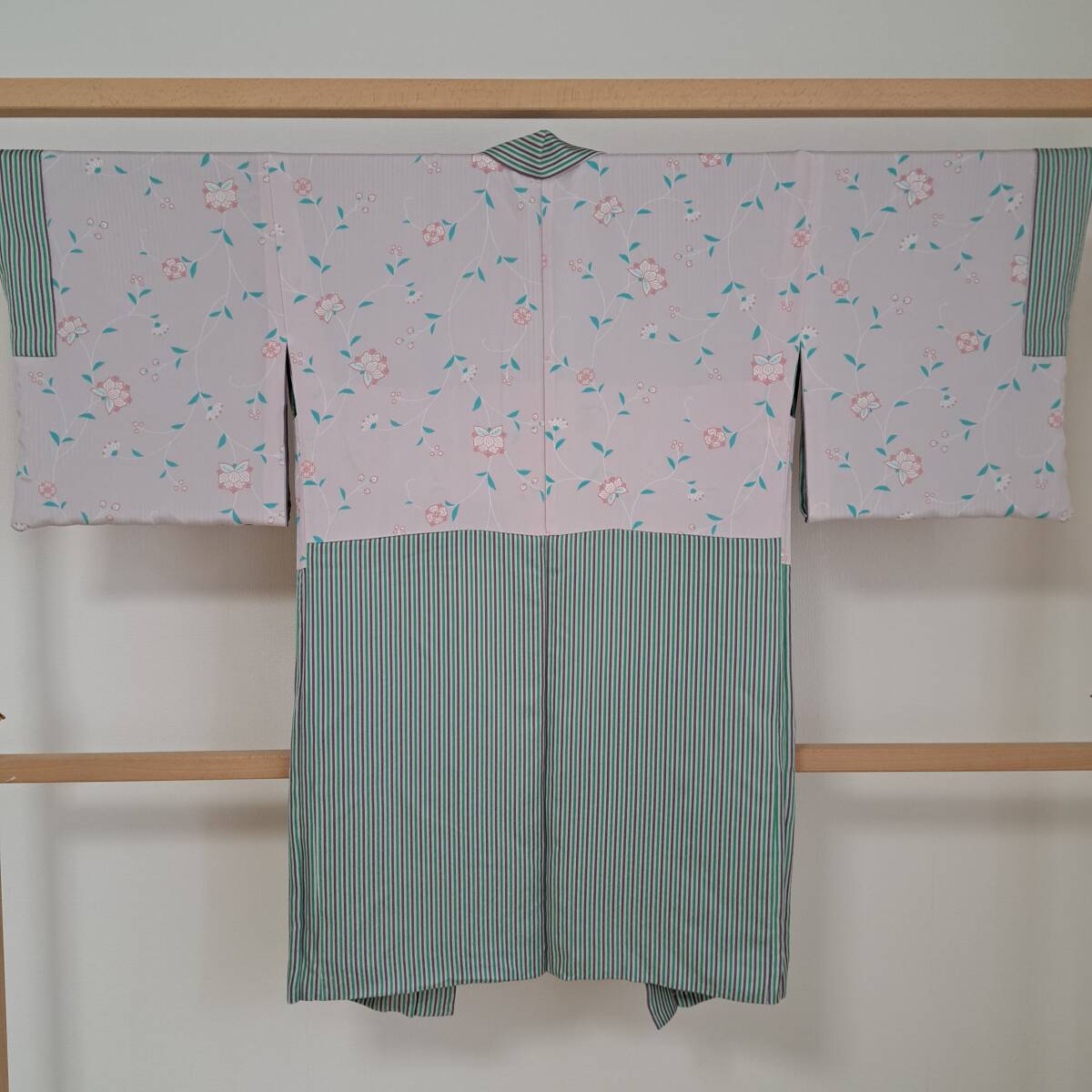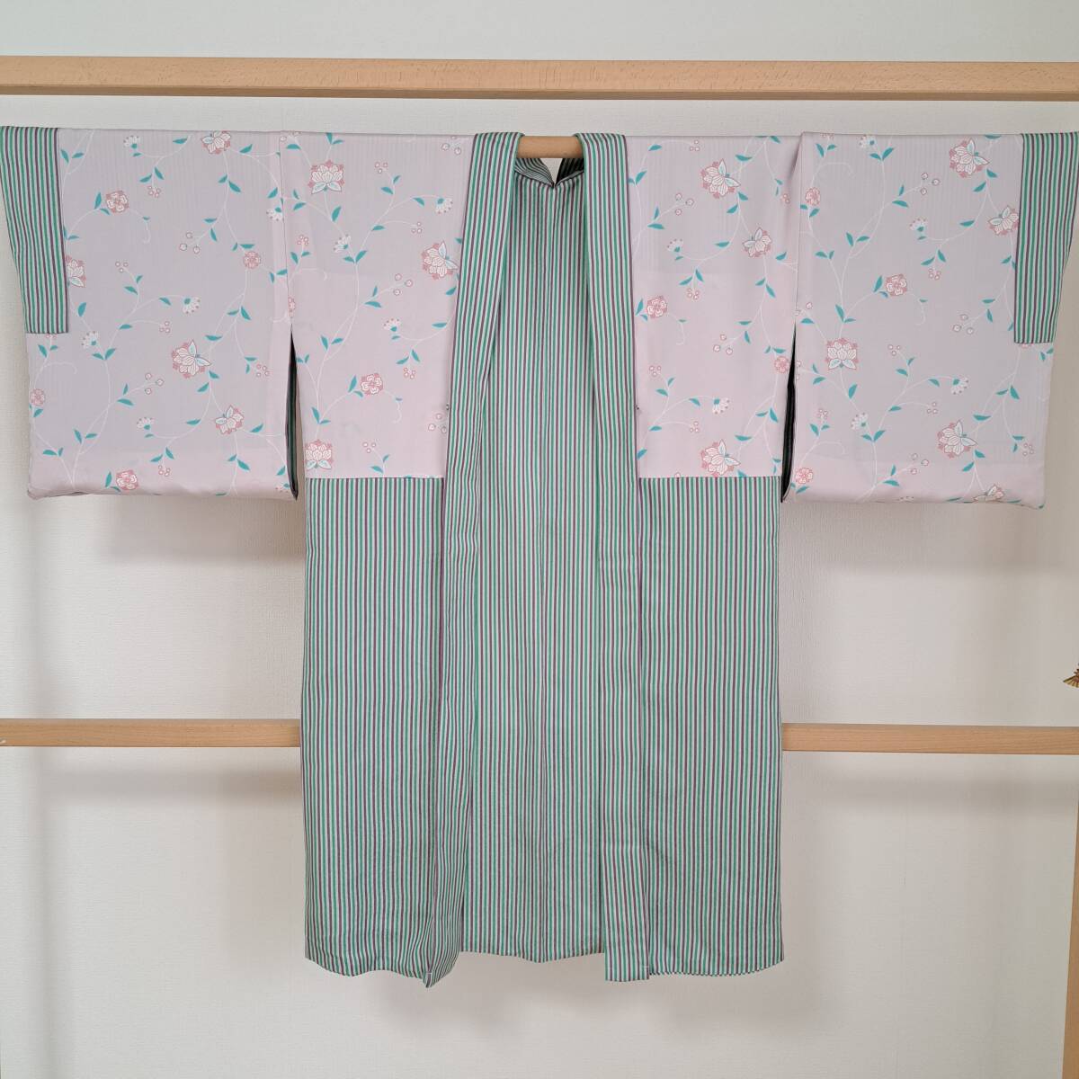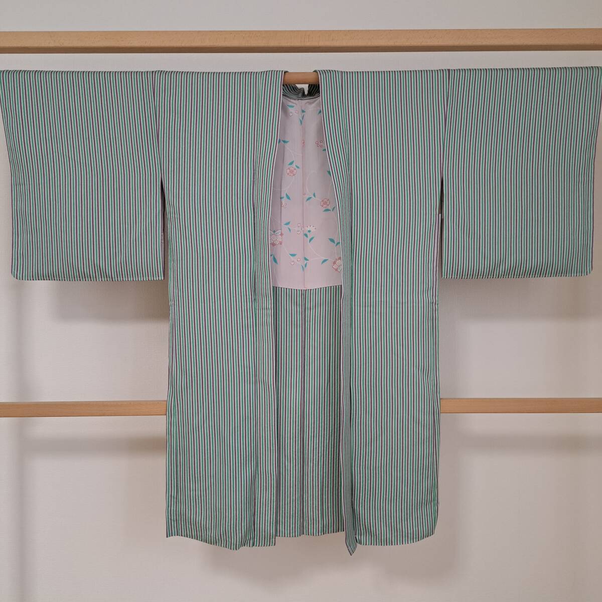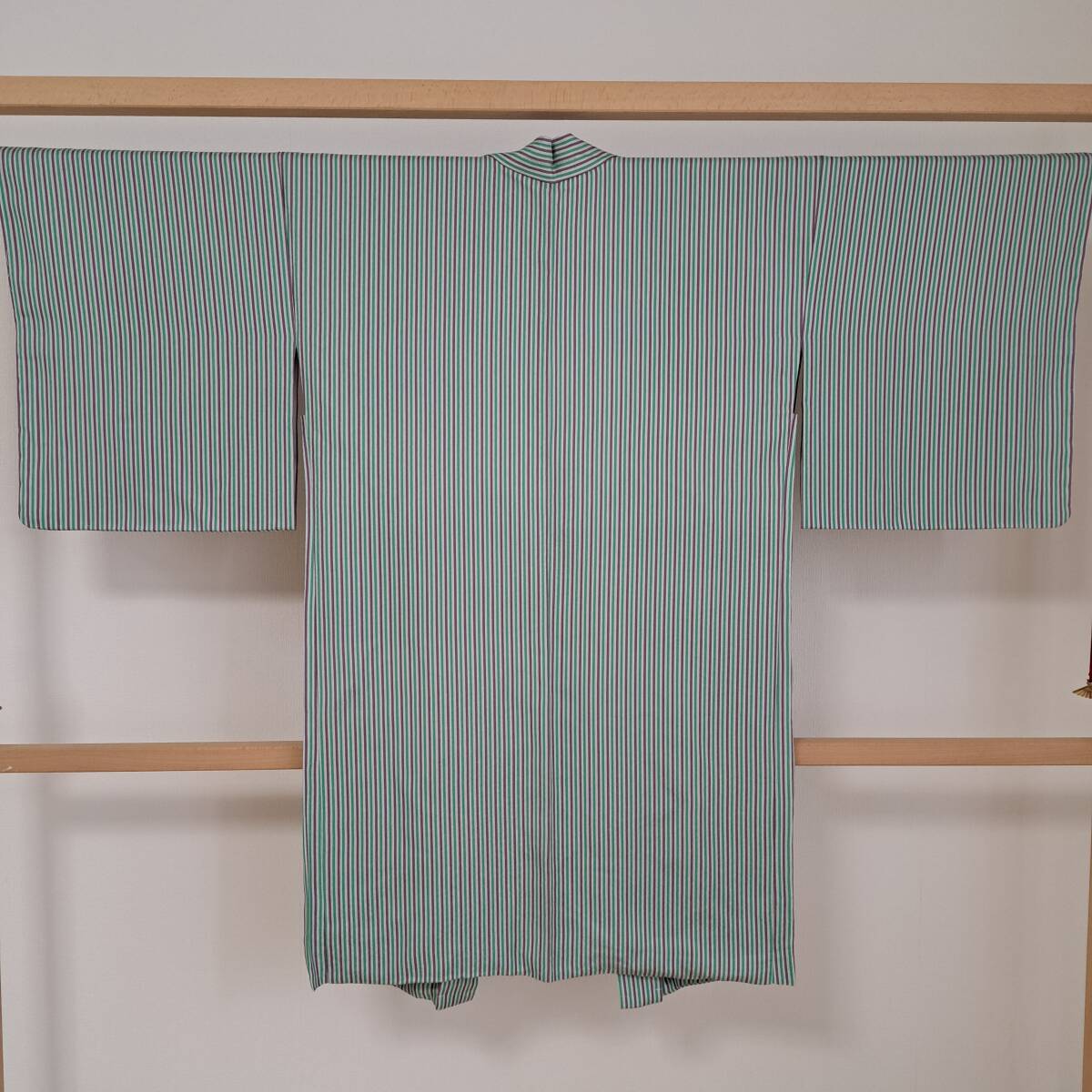 即決■着物の越田■裄70身丈106 正絹 長羽織 美品 ストライプ 縞 ■む09R11