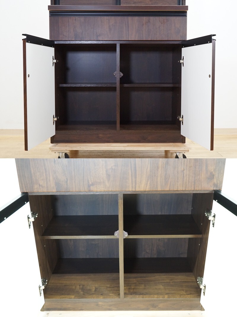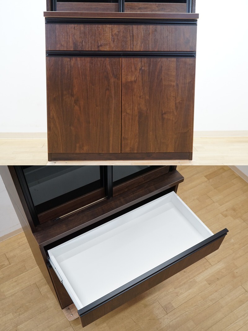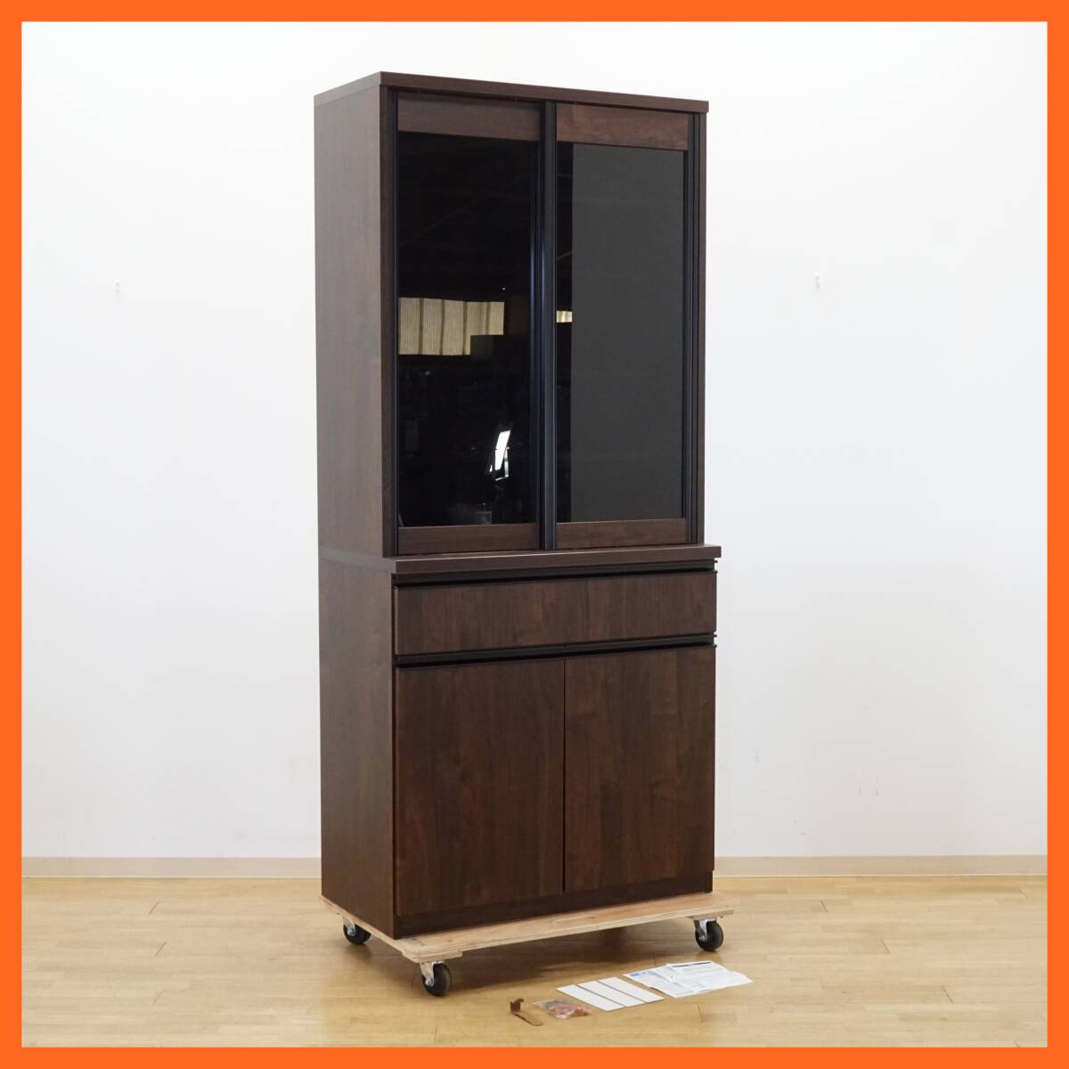 前ダ:【松田家具】900 ルルド 食器棚 スライド扉 引き出し 扉収納 高さ約198㎝ 幅約88.3㎝ ダイニングボード 収納家具 インテリア |