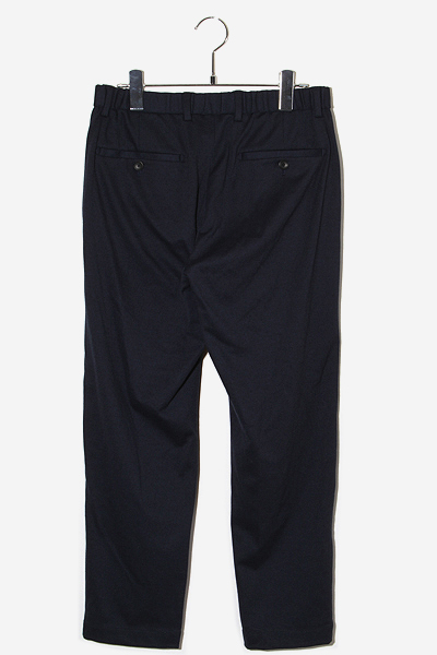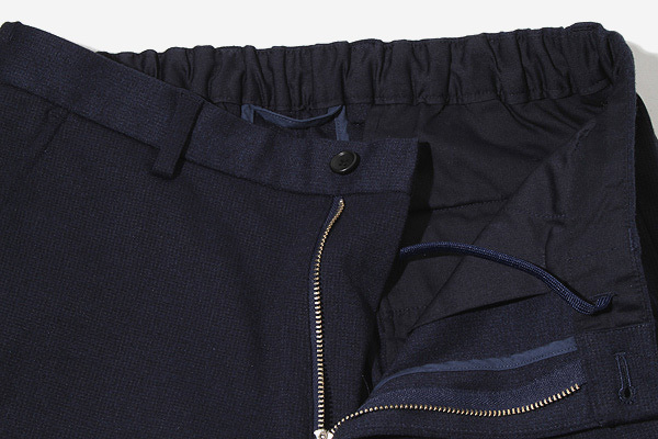 【備考】デザインウエストにはドローコード、後部ゴム、ベルトループが付いているのでイージーパンツの様なリラックスした着用から、ベルトを使ったトップスインの着こなしまで幅広く対応します。