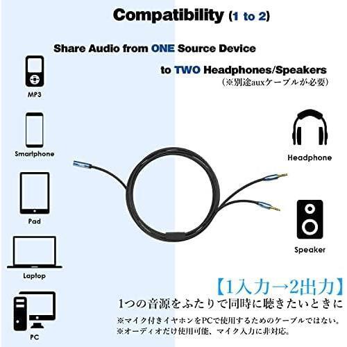 【3.5mmステレオ 分配ケーブル】3.5mmステレオオーディオケーブル(メス-オス*2)で、オーディオオプションをさらに広げられます。