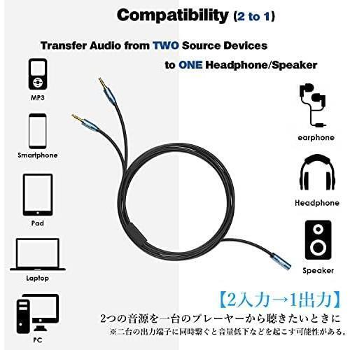 MillSO ステレオミニ統合ケーブル オーディオ分配ケーブル 2.4m(240cm) 3.5mm 2入力1出力 ステレオミニプラグ ステレオ音声 3極 ス AF860