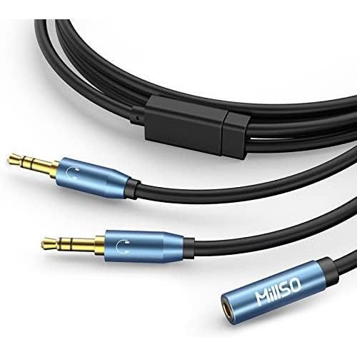 MillSO ステレオミニ統合ケーブル オーディオ分配ケーブル 2.4m(240cm) 3.5mm 2入力1出力 ステレオミニプラグ ステレオ音声 3極 ステレオミニジャック(メス)-ステレオミニプラグ(オス)×2 金メッキ オーディオケーブル 2分配ケーブル 分岐 音声ケーブル 二股 音楽シャア