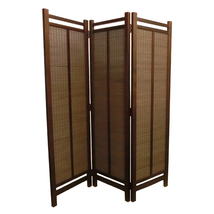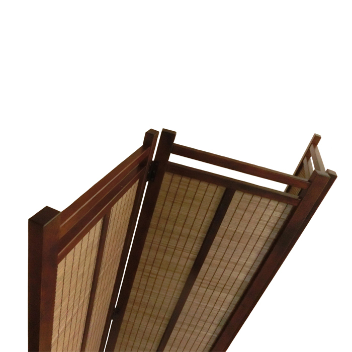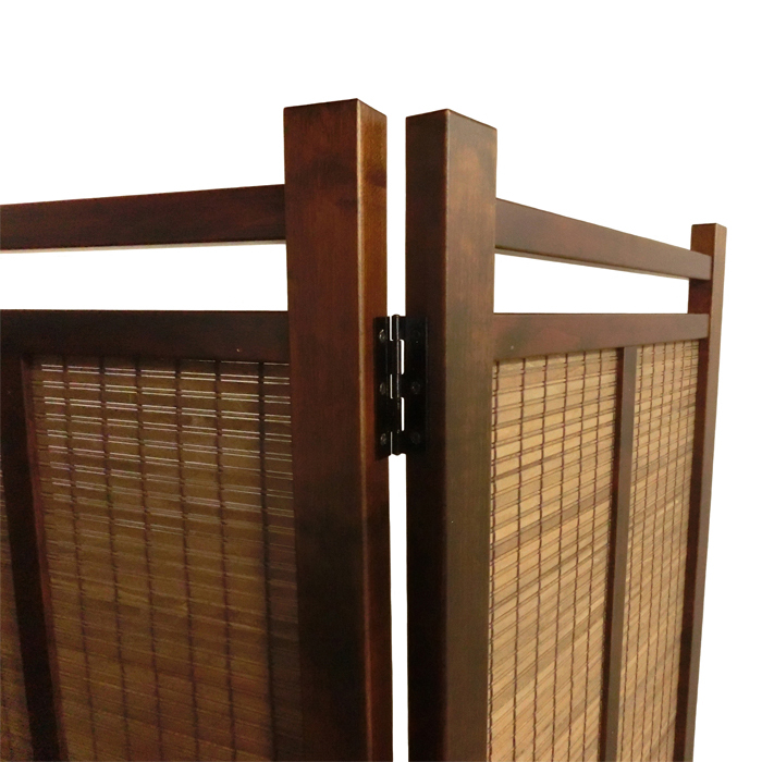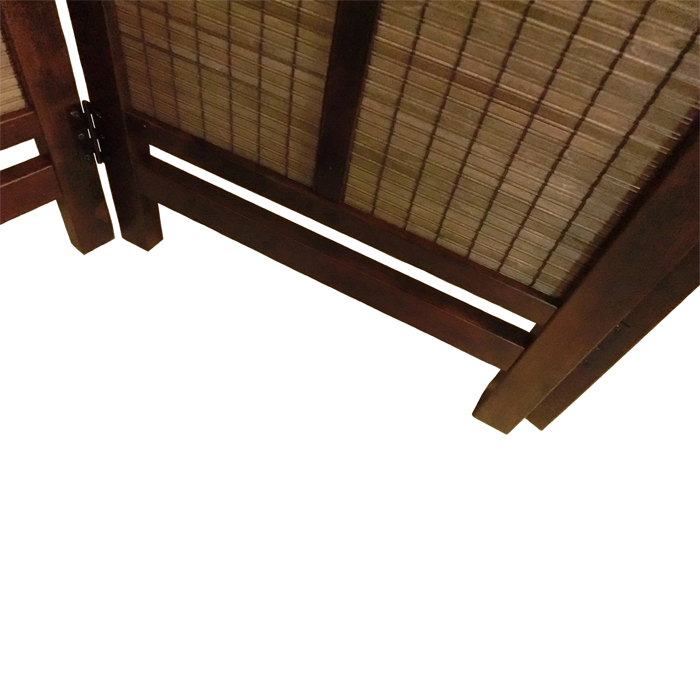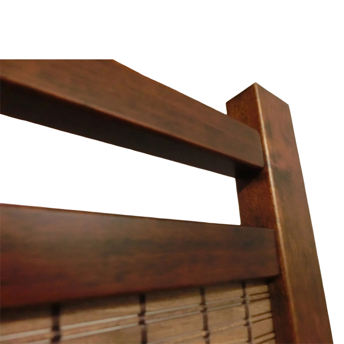 中部はシナ材を使用しオイルステイン、ダークブラウンをスダレ状に編んだ木簾です。