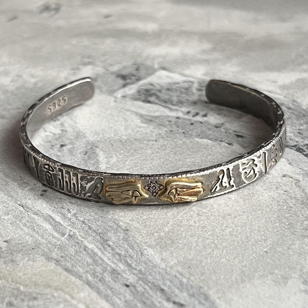 ホルスデザインと象形文字が存在感のあるシルバーバングルになります。