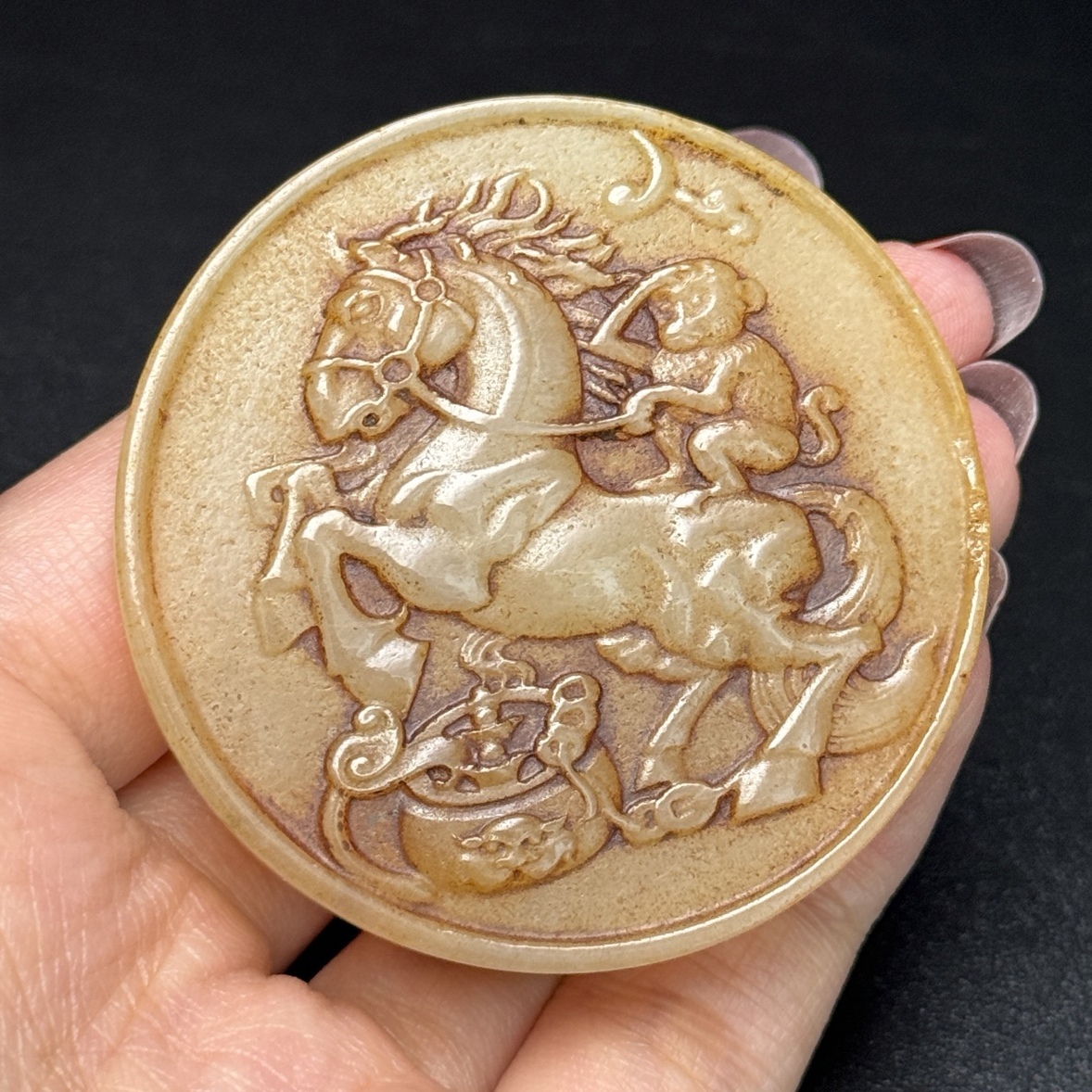*珍品旧蔵* 明清時期 玉彫 和田玉 腰帶扣 彫刻馬上封侯 輩輩封侯 玉質温潤 包漿一流 極細工 中国古玩 骨董品 古美味 H49