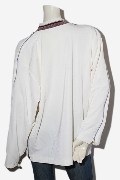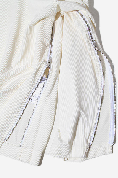 【備考】デザインストレッチ性の高いドレープ感のある素材のコードピケジャージートップスです。袖と脇に施されたジップは、開けるとスリットになりコーディネートのポイントに。