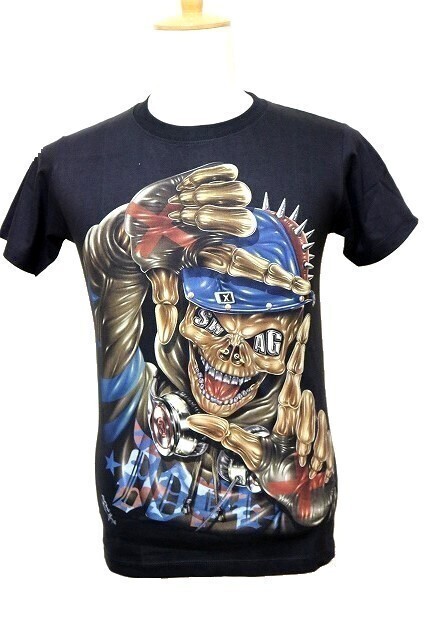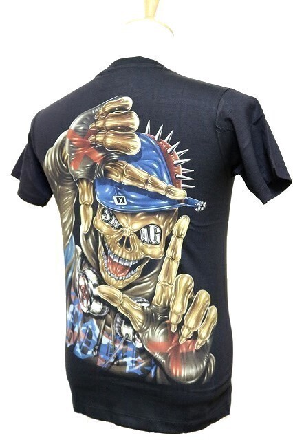 【新品】スカル ヒップホップ ダンス 3D Tシャツ 半袖【S】黒◆骸骨 SKULL hip hop DJ Dance ヘビメタ ロック ストリート