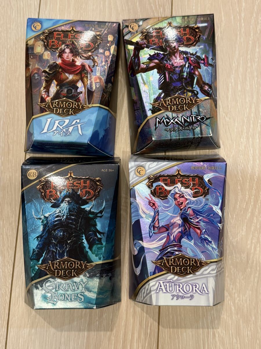●画像通りにFlesh and Blood アーモリーデッキ グレイビーボーンズ アイラ ウローラ マックス・ニトロ 4種セットとなります。