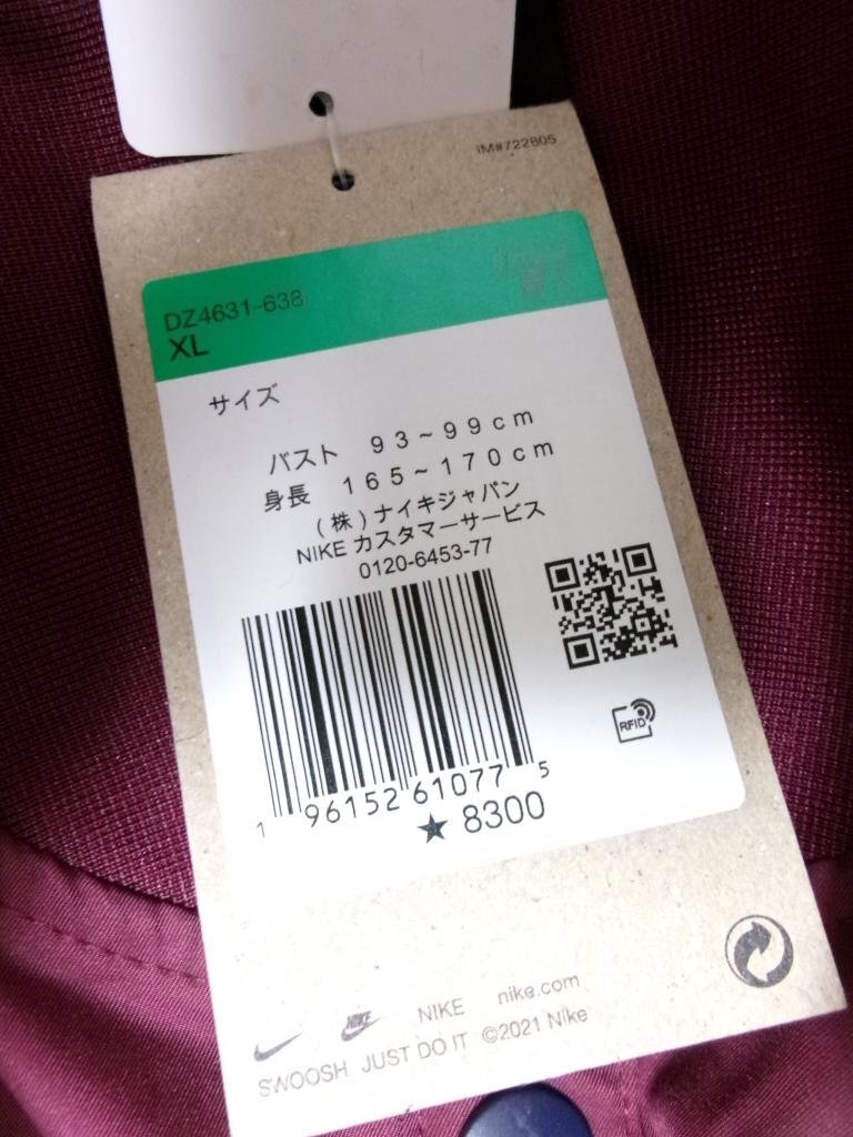 【送料込】 新品!NIKE ナイキ ブルゾン ボルドー×ホワイト NIKE WOMENS NSW JKT VSPT 品番DZ4631-638 未使用 タグ付き sizeXL/972555