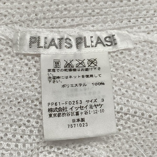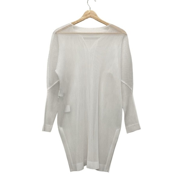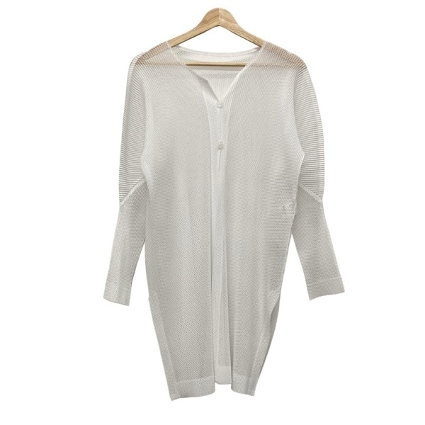 プリーツプリーズ PLEATS PLEASE カーディガン サイズ3 L - 白 レディース 長袖/ロング丈/メッシュ/プリーツ 美品 トップス