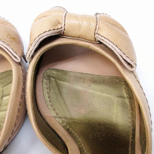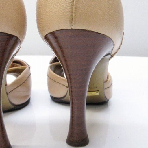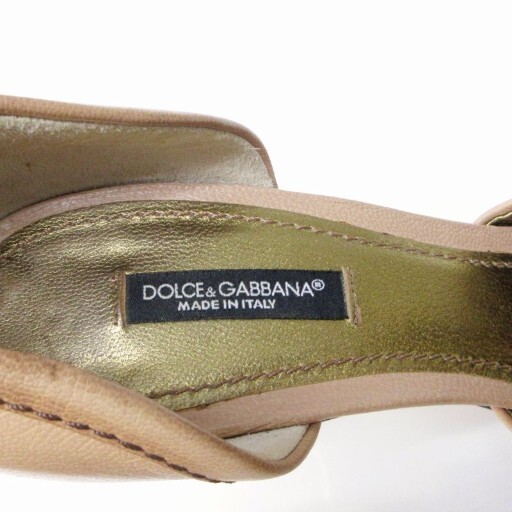 ドルチェ&ガッバーナ ドルガバ DOLCE&GABBANA サンダル リボンモチーフ レザー ハイヒール 37 1/2 約24.5cm ベージュ IBO79