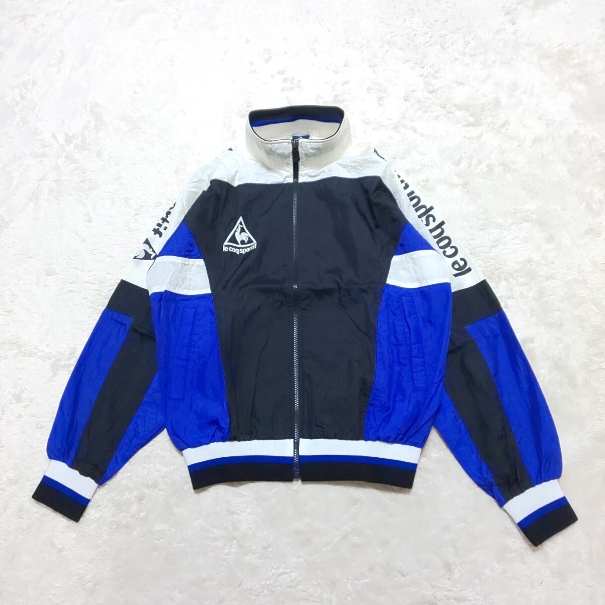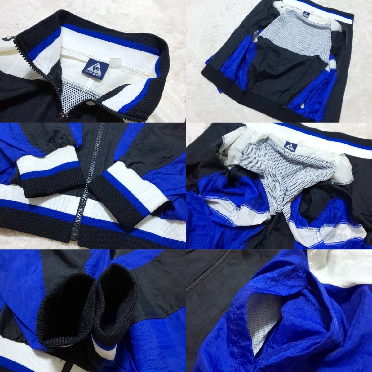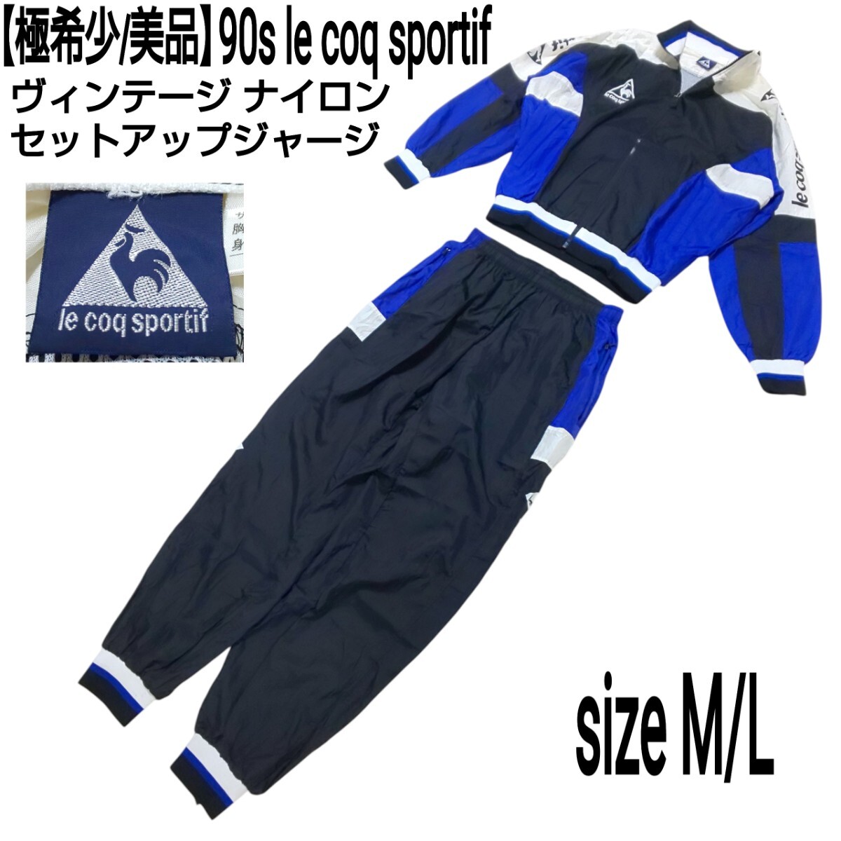 ①【極希少/美品】90s le coq sportif ルコックスポルティフ ヴィンテージ セットアップジャージ ナイロンジャケット ナイロンパンツ トレーニングウェア トリコロール 黒青