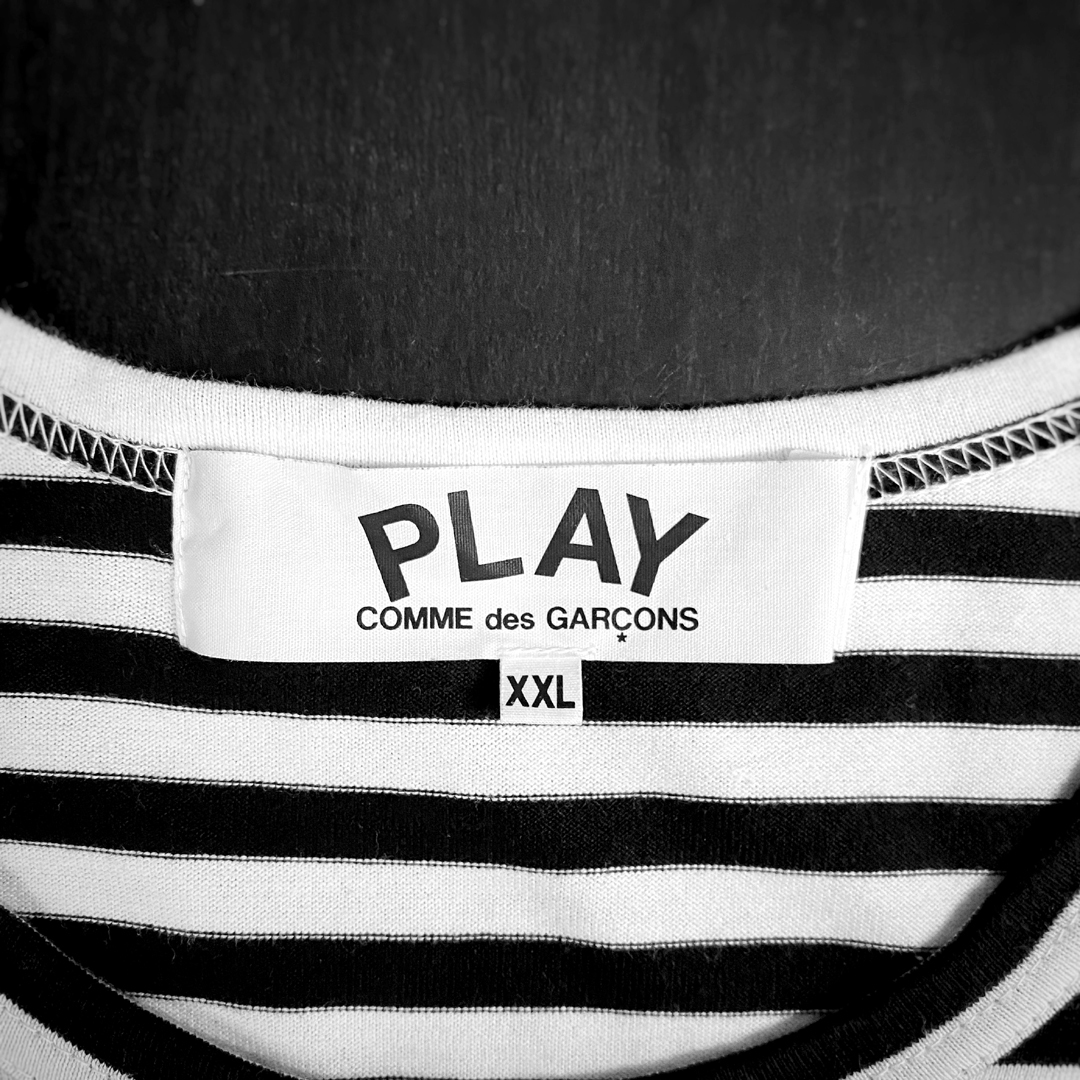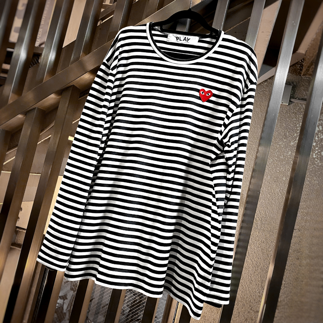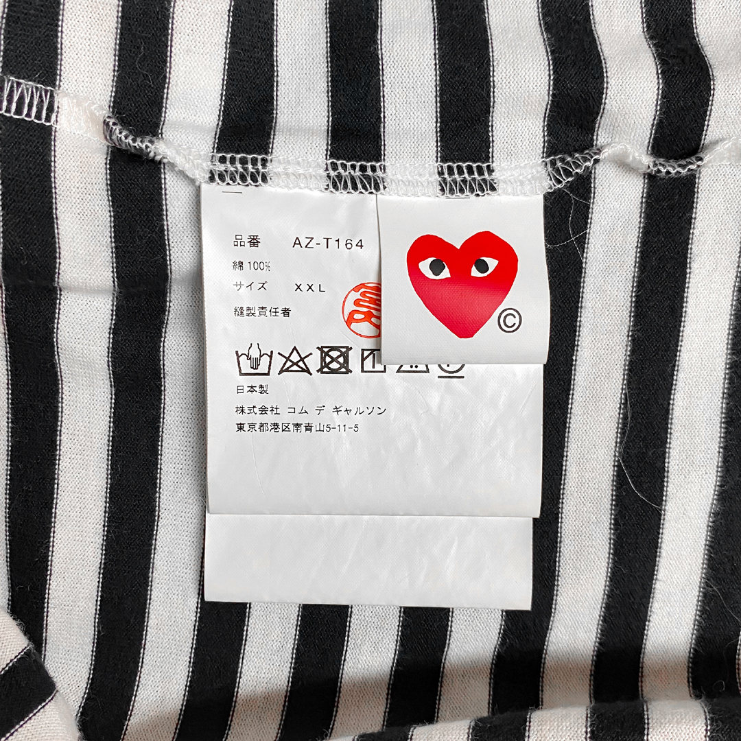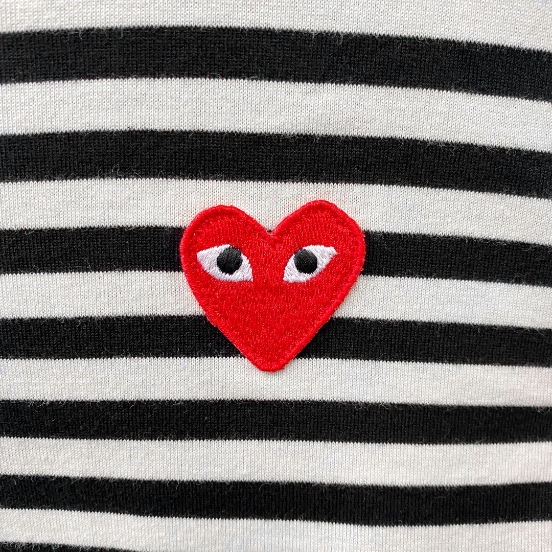 PLAY COMME des GARCONS プレイ コムデギャルソン ボーダー 長袖 ロング Tシャツ XXL ハートワッペン ロンT 白 黒 メンズ レディース