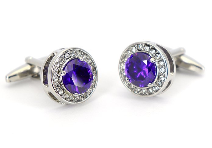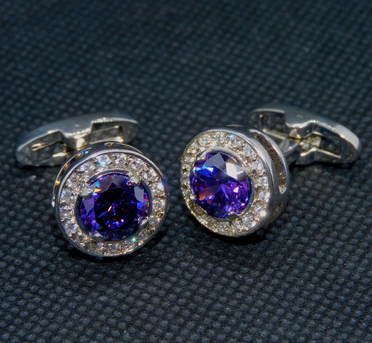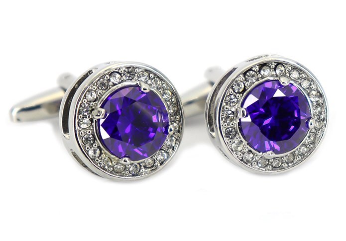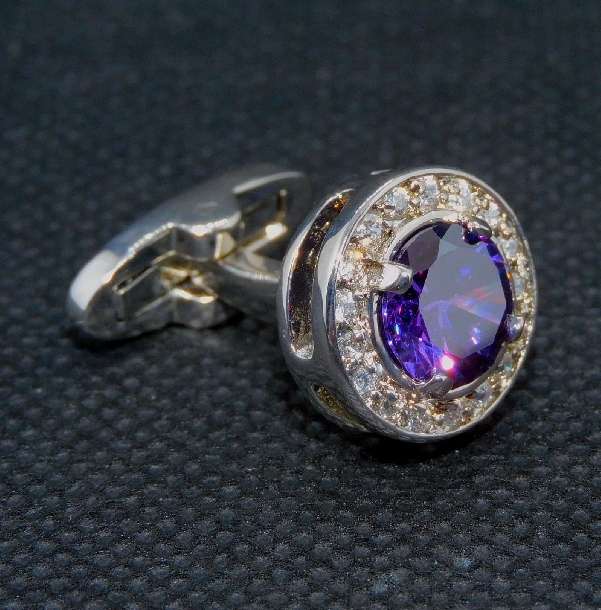◆KFLKカフス◆ラウンド アメジストジルコン◆スウィヴル式◆カフリンクス◆フォーマル◆ビジネス◆スーツ◆Yシャツ◆円形◆ヴァイオレット