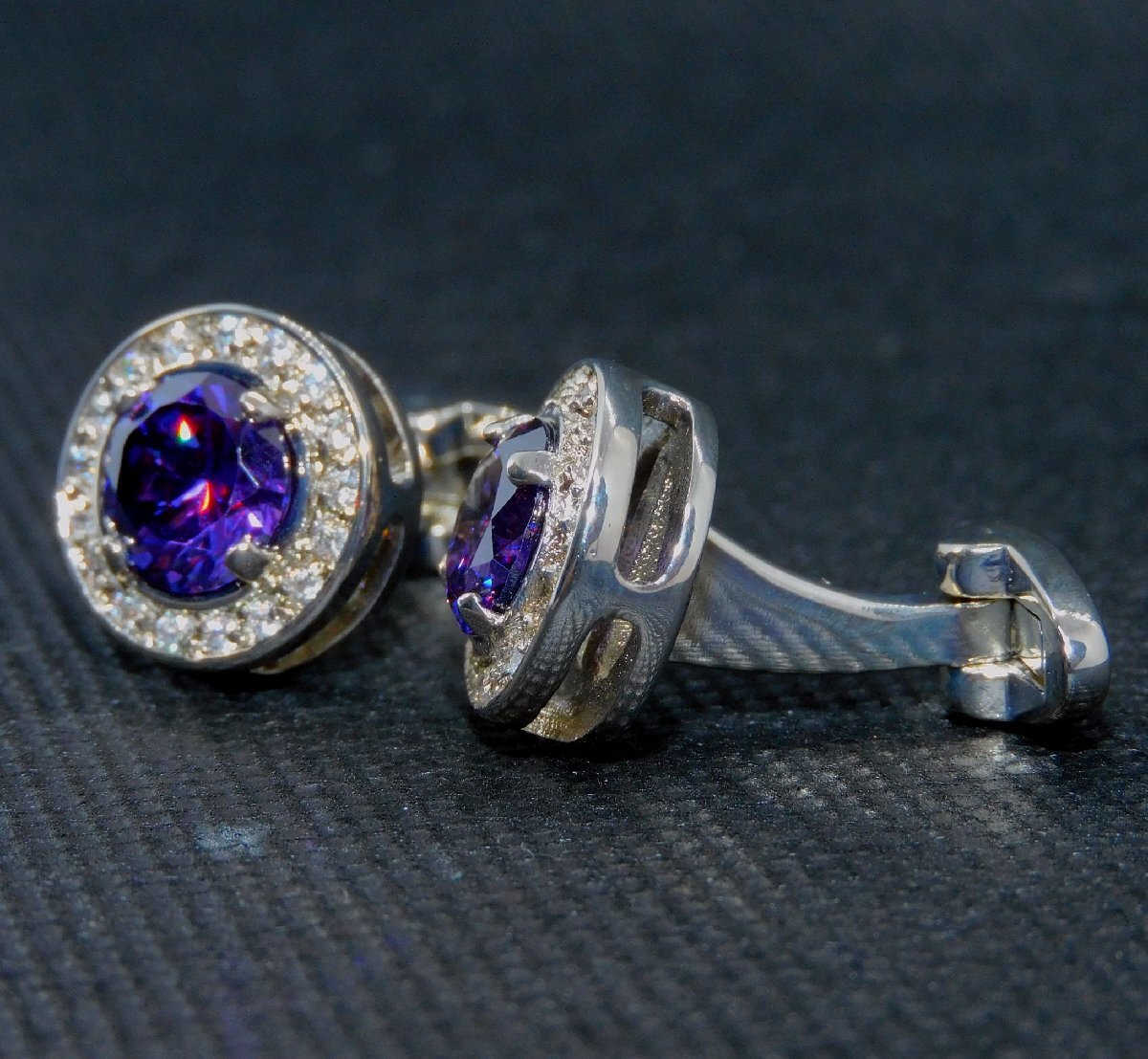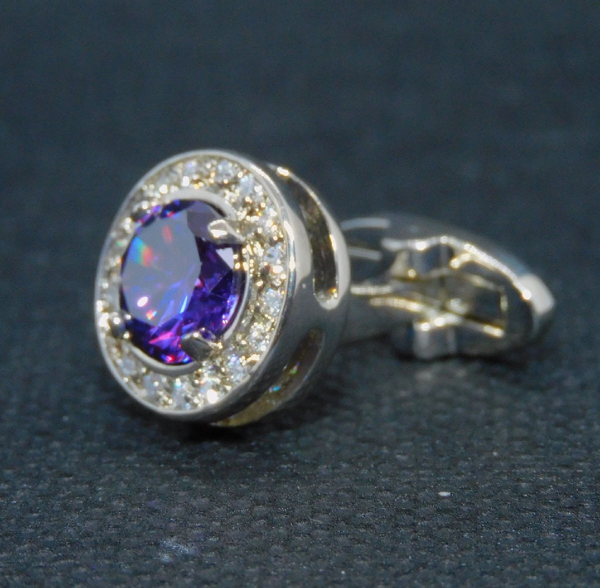 シルバーにラウンド型のアメジストジルコンが映えるKFLKカフリンクスです。
