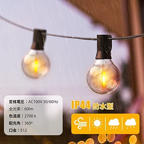 取付簡単&IP44防水:ストリングライトは取り付けやすいです。各電球には位置を固定できるクリップがあります。防水電球を使って、室内と室外で使えます。高品質の黒いゴム電線を採用しており、耐熱性と耐寒性に優れています。