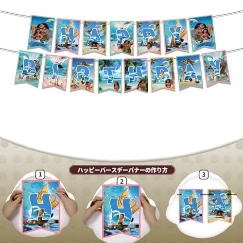 MDJAIE(ング ヘ)モアナと伝説の海誕生日飾り付けモアナディズニーバースデーバルーンガーランド誕生日バルーンバースデーデコレーション風船セットHappyBirthdayガーランドケーキトッパーハッピーバースデーバナー飾りセットリボン付き