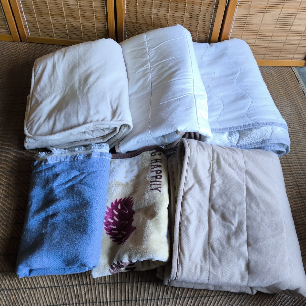 ◎【寝具 まとめ売り】中古品 引き上げ品 敷きパッド 毛布 冬用 施設 キャンプ レジャー アウトドア 仮眠 ひざ掛け 色々 268-40