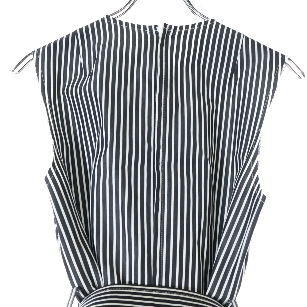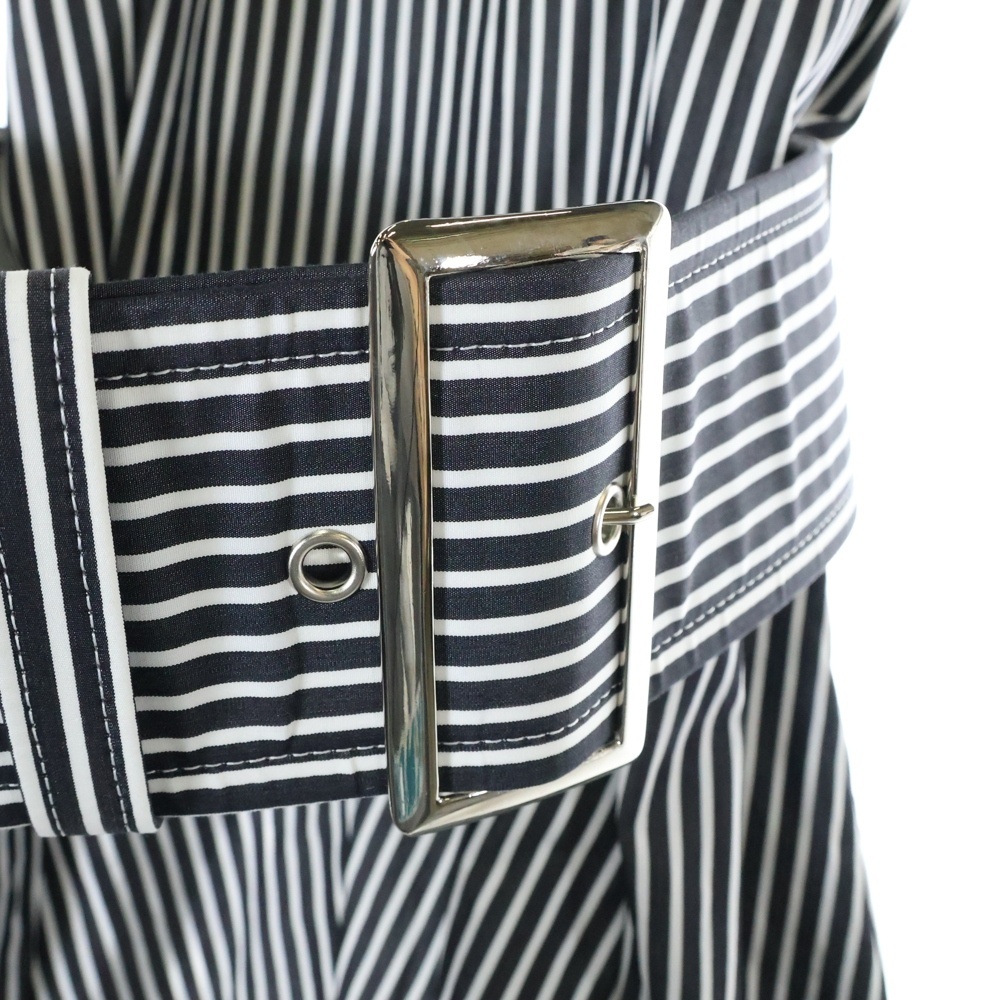 品名11SS ベルト付き ストライプ ノーカラー ワンピース ドレス ブラック/ホワイト GG-0073 AD2010 レディース
