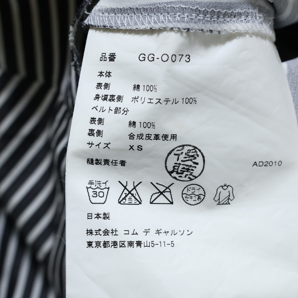 コムデギャルソン 11SS ベルト付き ストライプ ノーカラー ワンピース ドレス ブラック/ホワイト GG-0073 AD2010 レディース