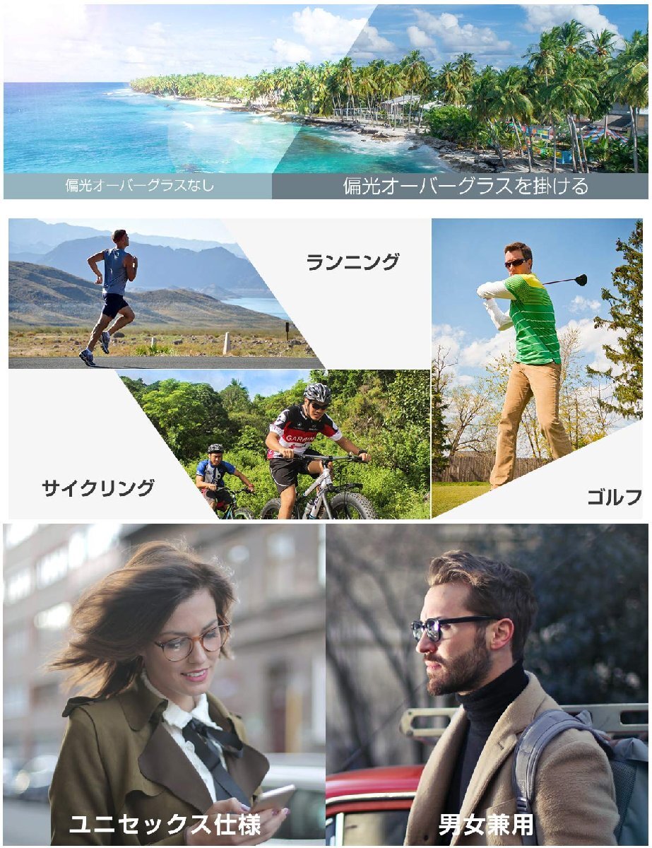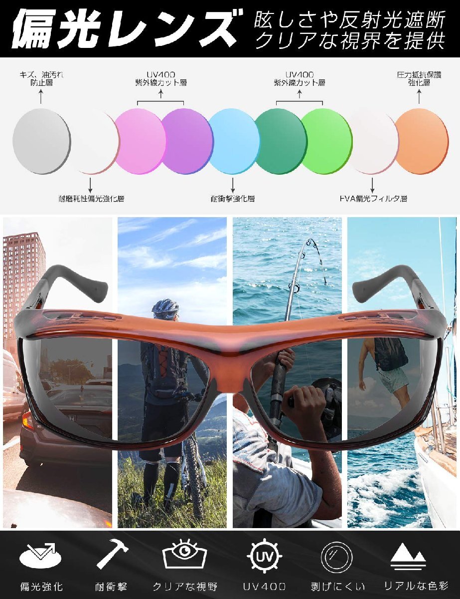 【紫外線カットサングラス】この偏光サングラスはUV400機能付き、有害な紫外線を99%ブロック、目を強い日差しから保護します。目の日焼け対策にはピッタリ。運転、通勤、釣りや旅行など幅広シーンで目が疲れにくいです。