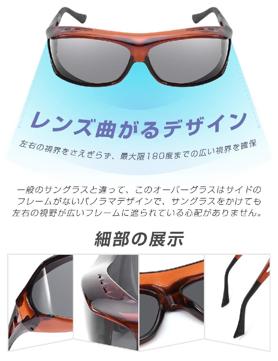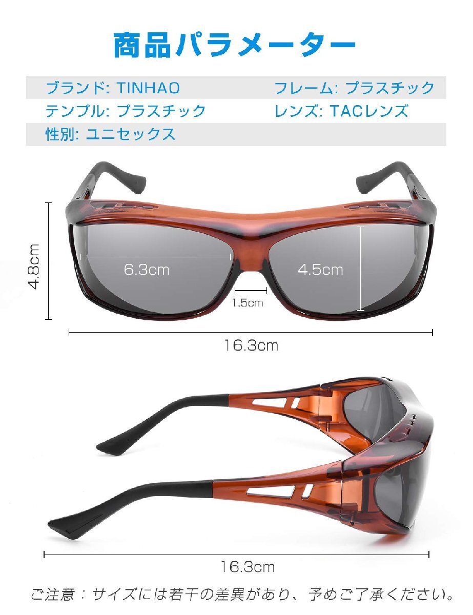 ブランド:TINHAOカラー:ブラウンフレーム・ブラックレンズ【偏光&オーバーサングラス】偏光レンズを採用しており、乱反射をカットして、光を一方向だけで通過させることで、眩しさの原因となる乱反射などのギラつきを抑え、目に優しい光を取り込って、快適な視界を確保します。