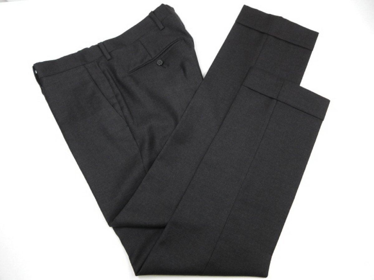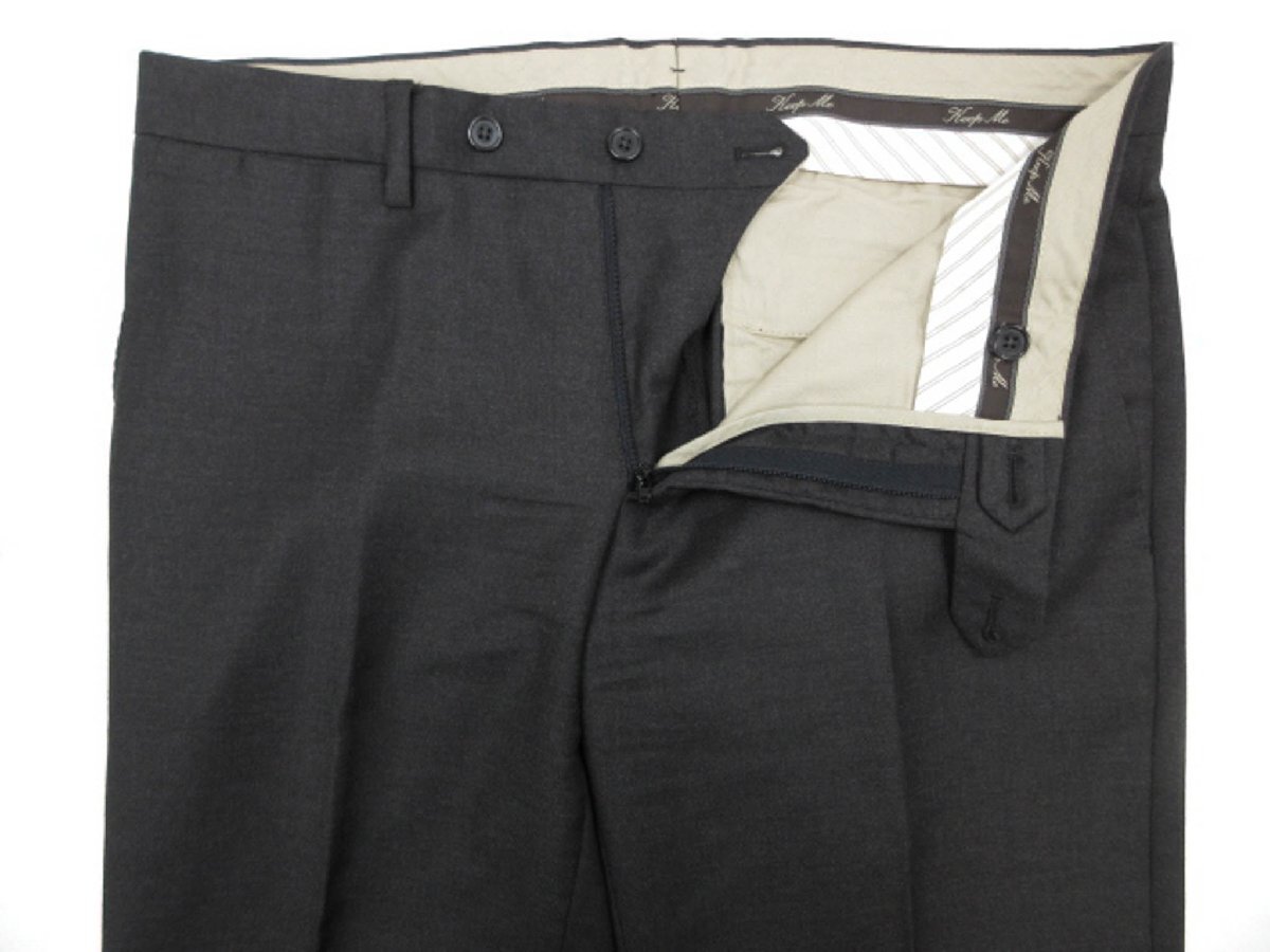 ・スラックス・・・ウエスト実寸約84センチ(1センチ出し、4センチ詰め可能です)、股上約23センチ、渡り幅約30センチ、股下約75センチ、総丈約96センチ、裾幅約18.5センチ、ダブル仕上げ(ダブル幅約5センチ、最大でプラス11センチ長くできます)