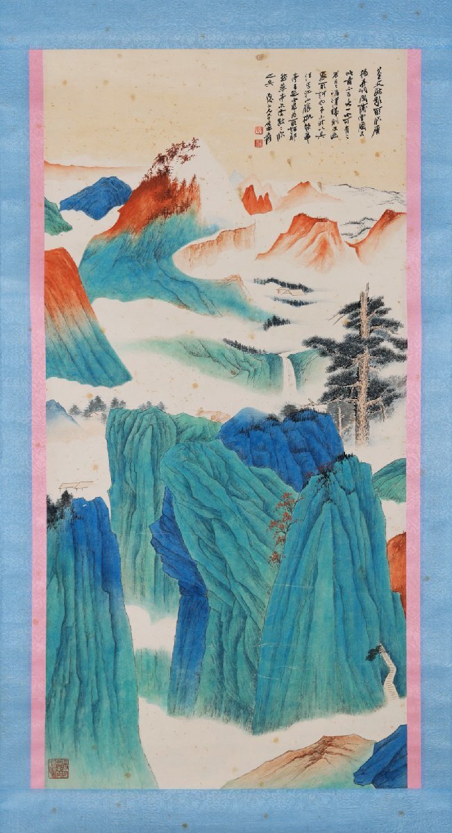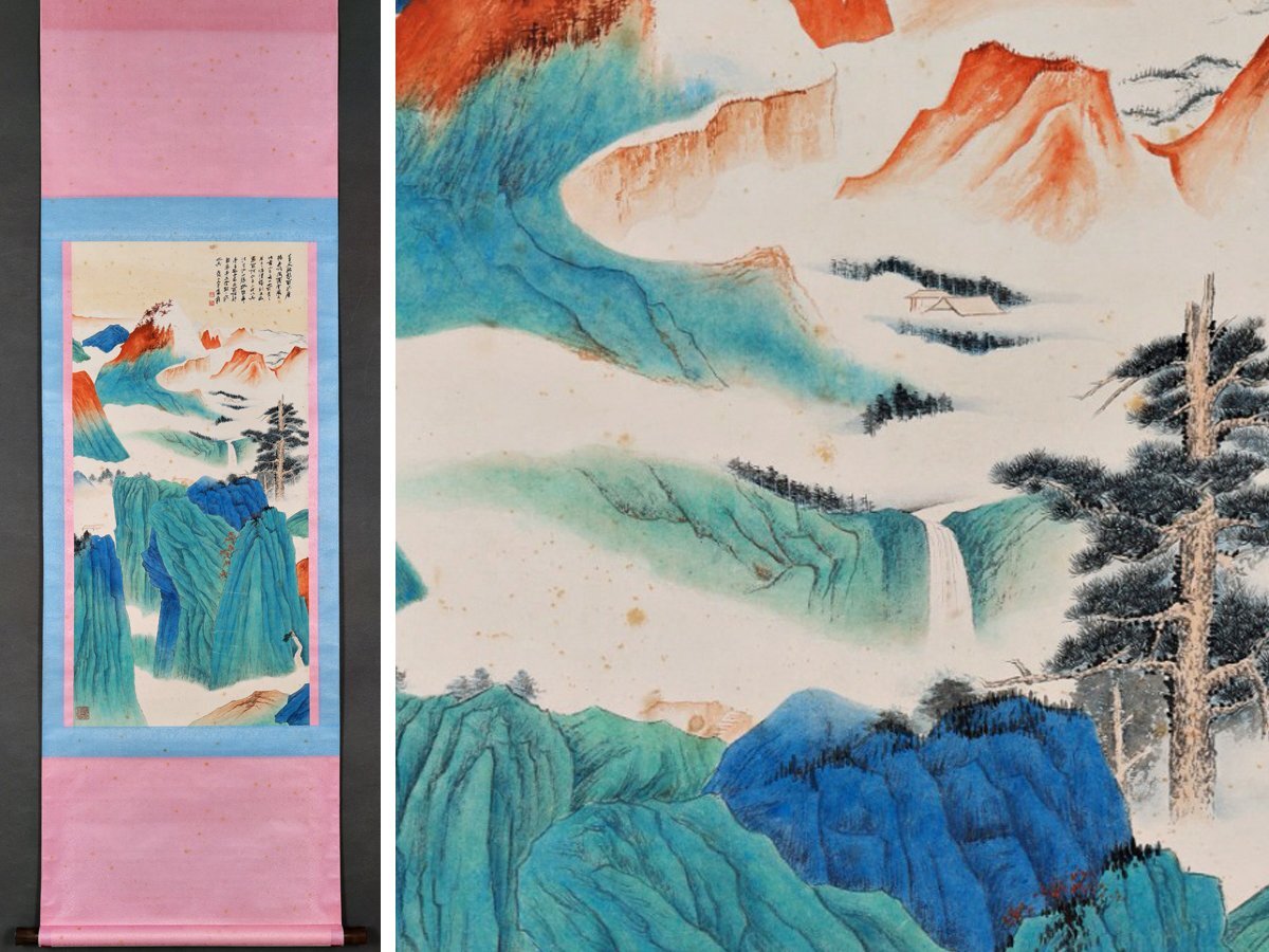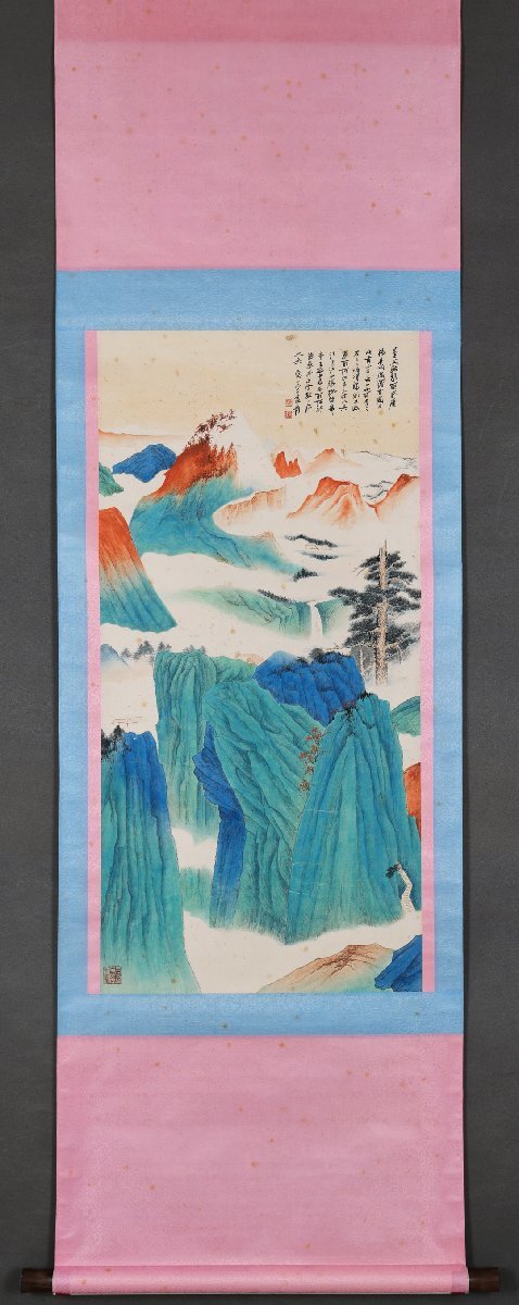 【安】中国近時代画家「張大千書」紙本「雲霄飛泉図」掛軸 中国画 墨寶妙品 中国書道 古美味 古美術 279 サイズ(約寸) |