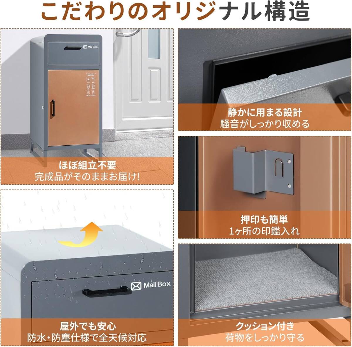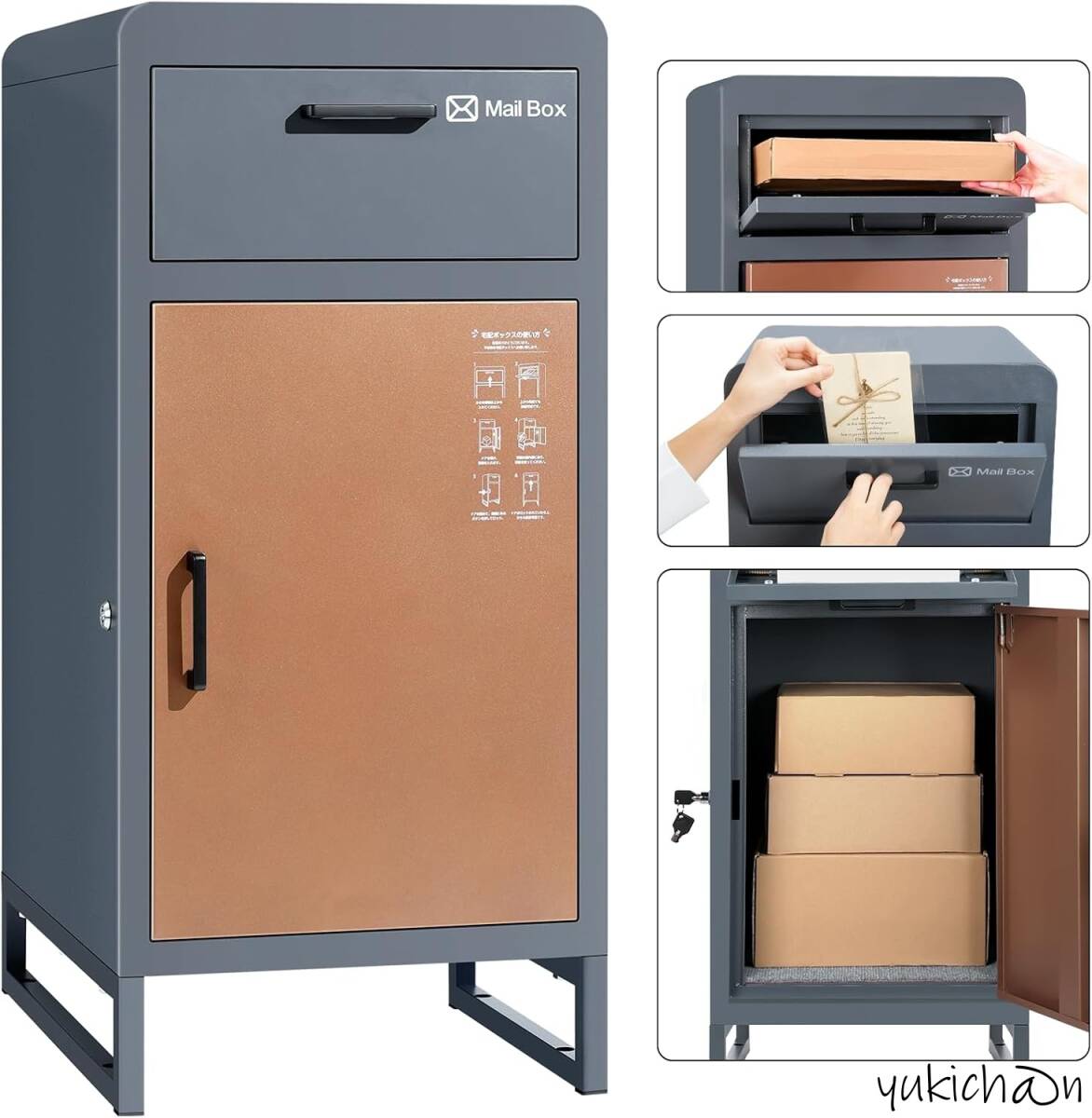 宅配ボックス 宅配BOX 複数投函可能 ポスト一体型 グレーブラウン 屋外 防水 大容量 スタンド式 盗難防止 簡単設置 日本語取扱説明書