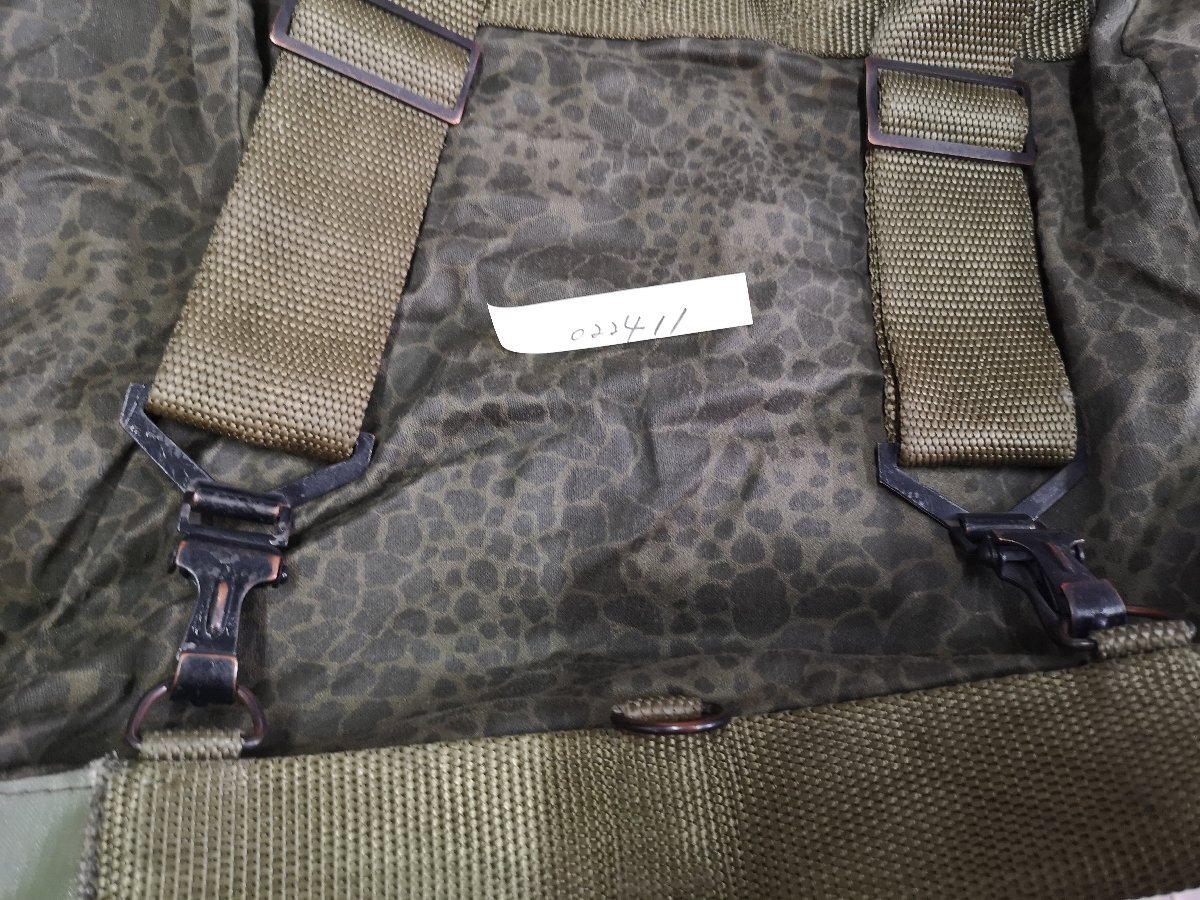 ルーマニア軍のコットンキャンバスとレザーのコンビリュックです。随所にレザーが使用され、非ポーランド軍が共産圏時代最後期の1980年-1993年にかけて採用されたプーマ迷彩と呼ばれるカモフラージュを全体に施した存在感のあるバッグです。 柔らかなコットンで作られ、底の部分には補強に為にPVCが使用されています。 サイズも十分あり、2段階に調節が可能です。6枚目までの画像は流用です。 ●サイズ H約40-60cm × W約33cm × マチ約23cm ストラップ長さ:約48-80cm 容量:約30-45L、素材:コットン/PVC、状態:軽いユーズド 金属には若干錆あり。 沖縄離島を除く全国元払い500円にてお送りいたします。落札価格にプラスでお願いします。 リュック