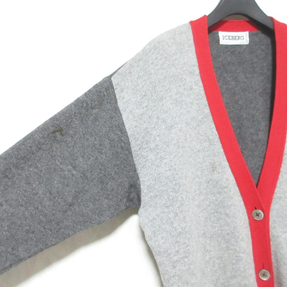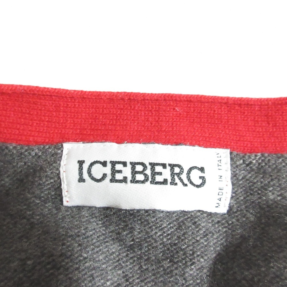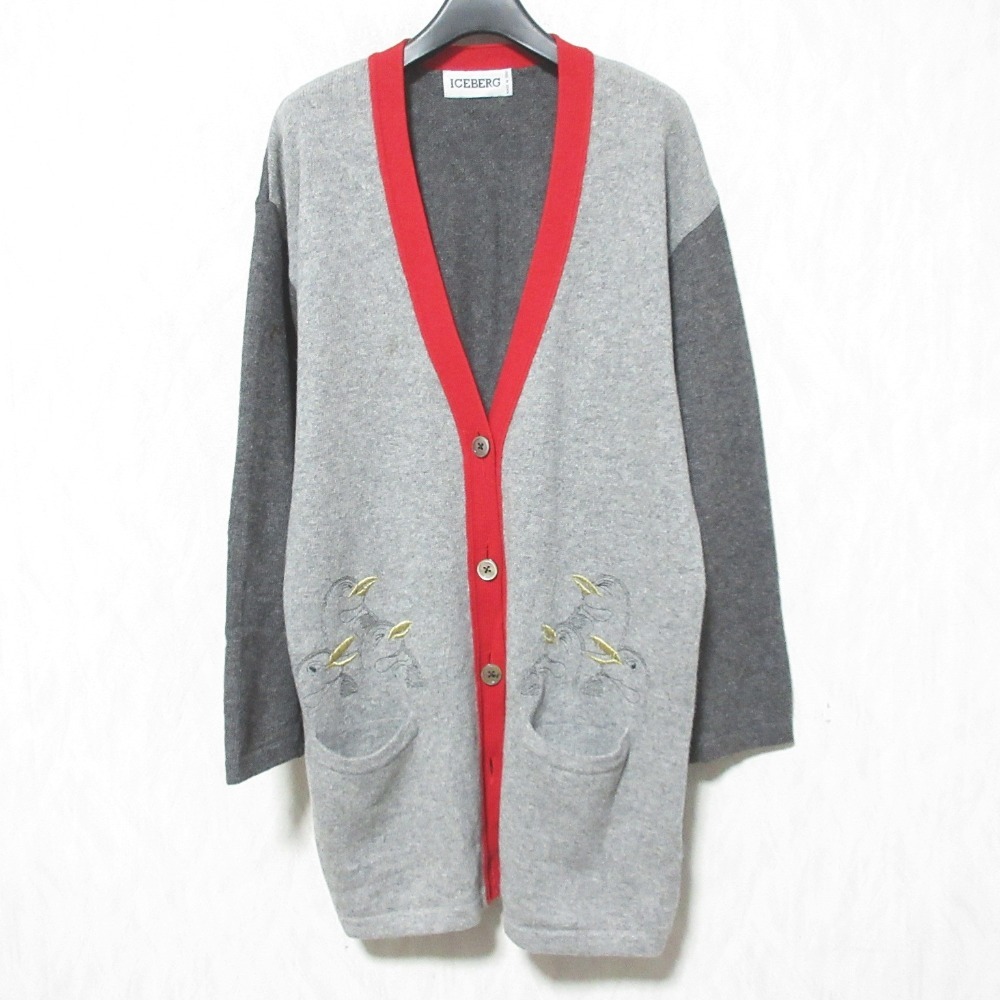 良品 ICEBERG アイスバーグ ペンギン刺繍 Vネック ニットカーディガン サイズ42 グレー